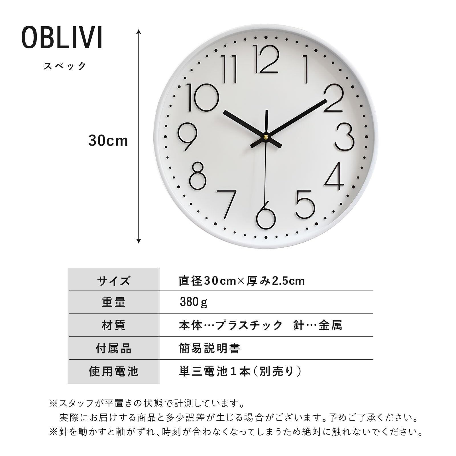 Oblivi 掛け時計 非電波 おしゃれ 北欧 連続秒針 静音 壁掛け時計 掛時計 自宅 寝室 部屋飾り 贈り物 インテリア 大数字 見やすい 30cm (ホワイト)