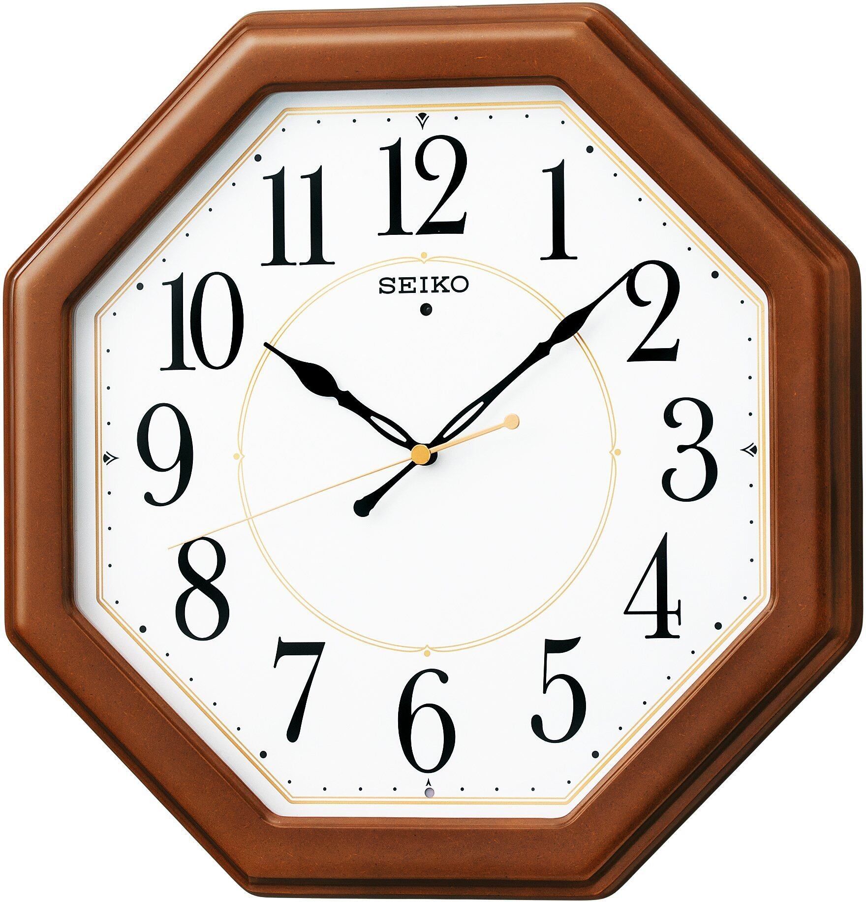 セイコークロック(Seiko Clock) 掛け時計 電波 アナログ 八角型 木枠 茶 木地 KX389B