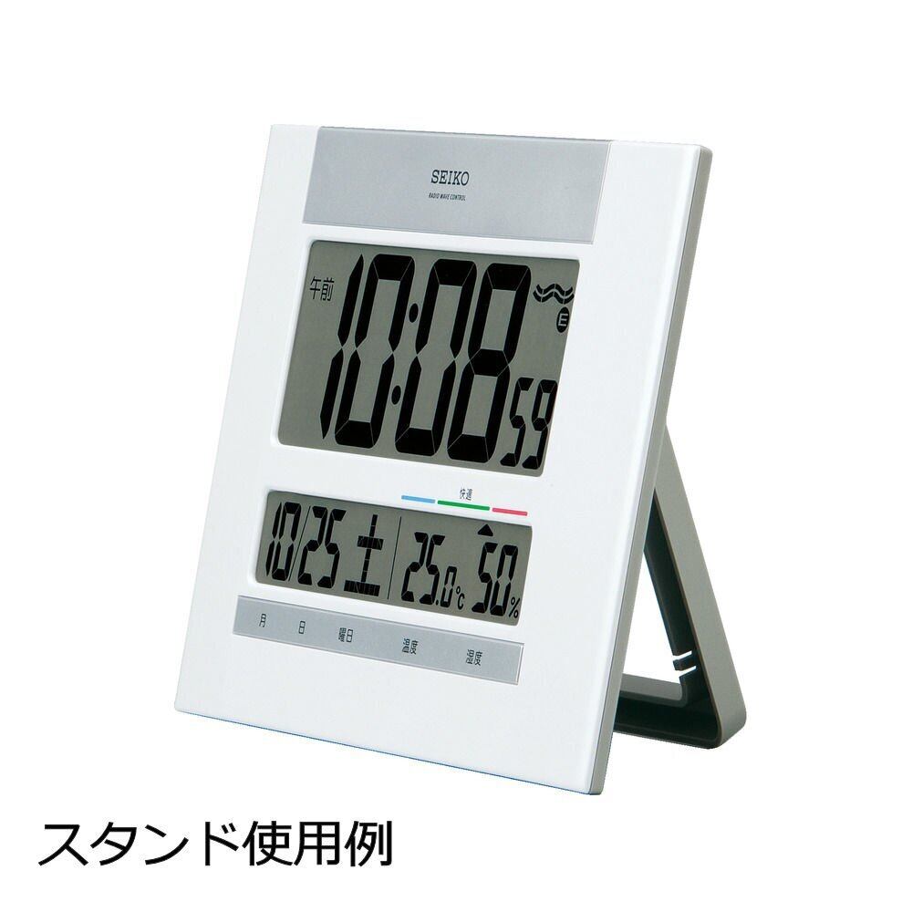セイコークロック 掛け時計 置き時計 兼用 電波 デジタル カレンダー 快適度 温度 湿度 表示 薄型 白 パール SQ429W