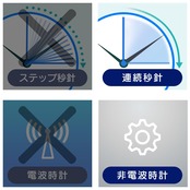 特徴:アナログ時計、静音設計、連続秒針、スタンド付き、卓上用