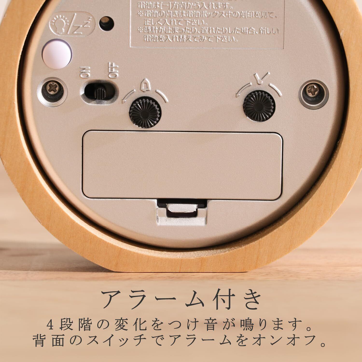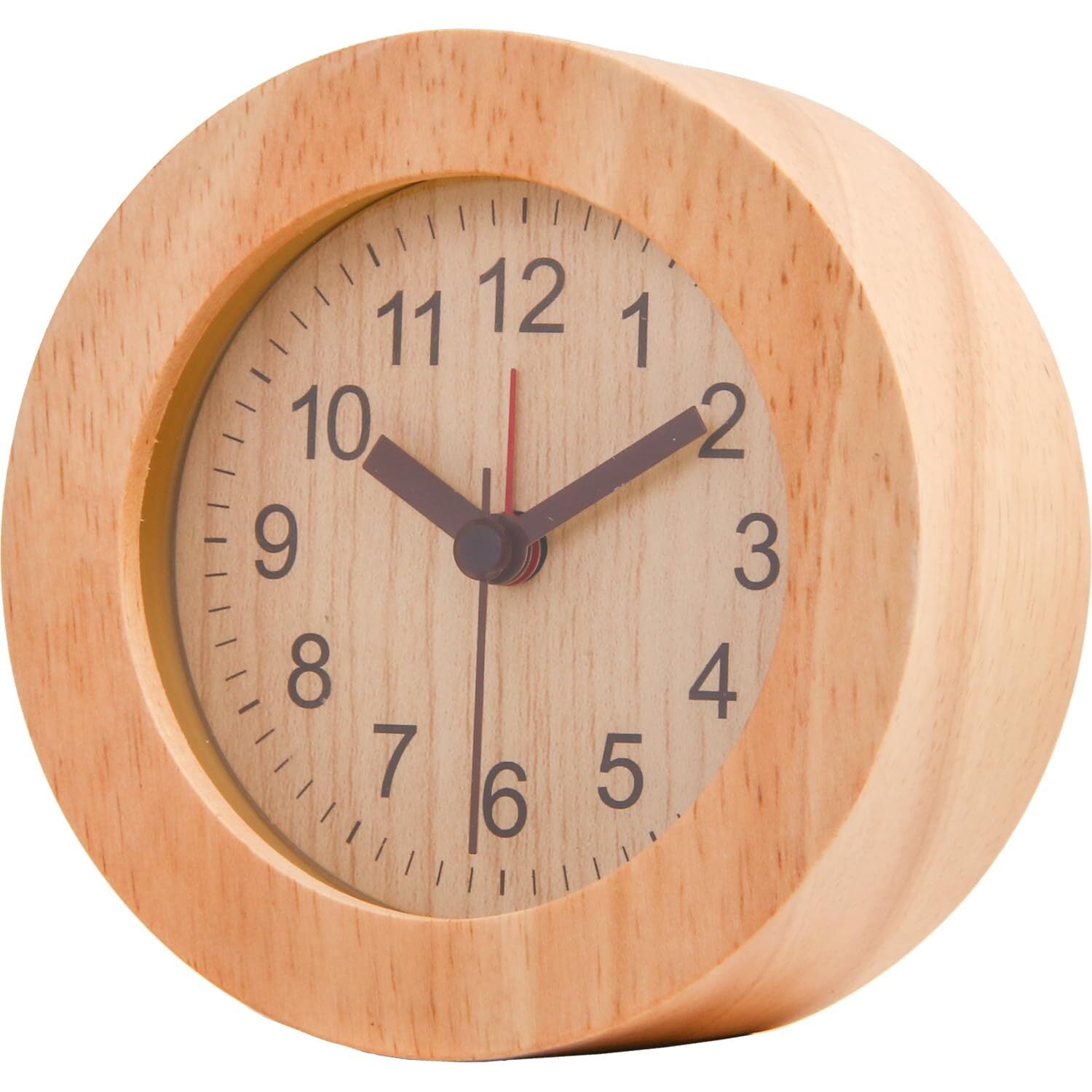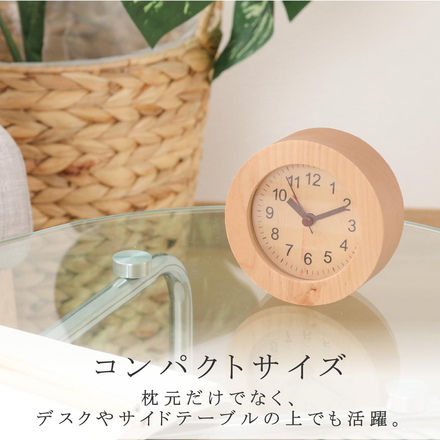 不二貿易(Fujiboeki) 置き時計 目覚まし時計 アナログ 幅10.2cm ナチュラル 天然木 静音式 アラーム付き ライト付 卓上 ラウンド ウッド 36699