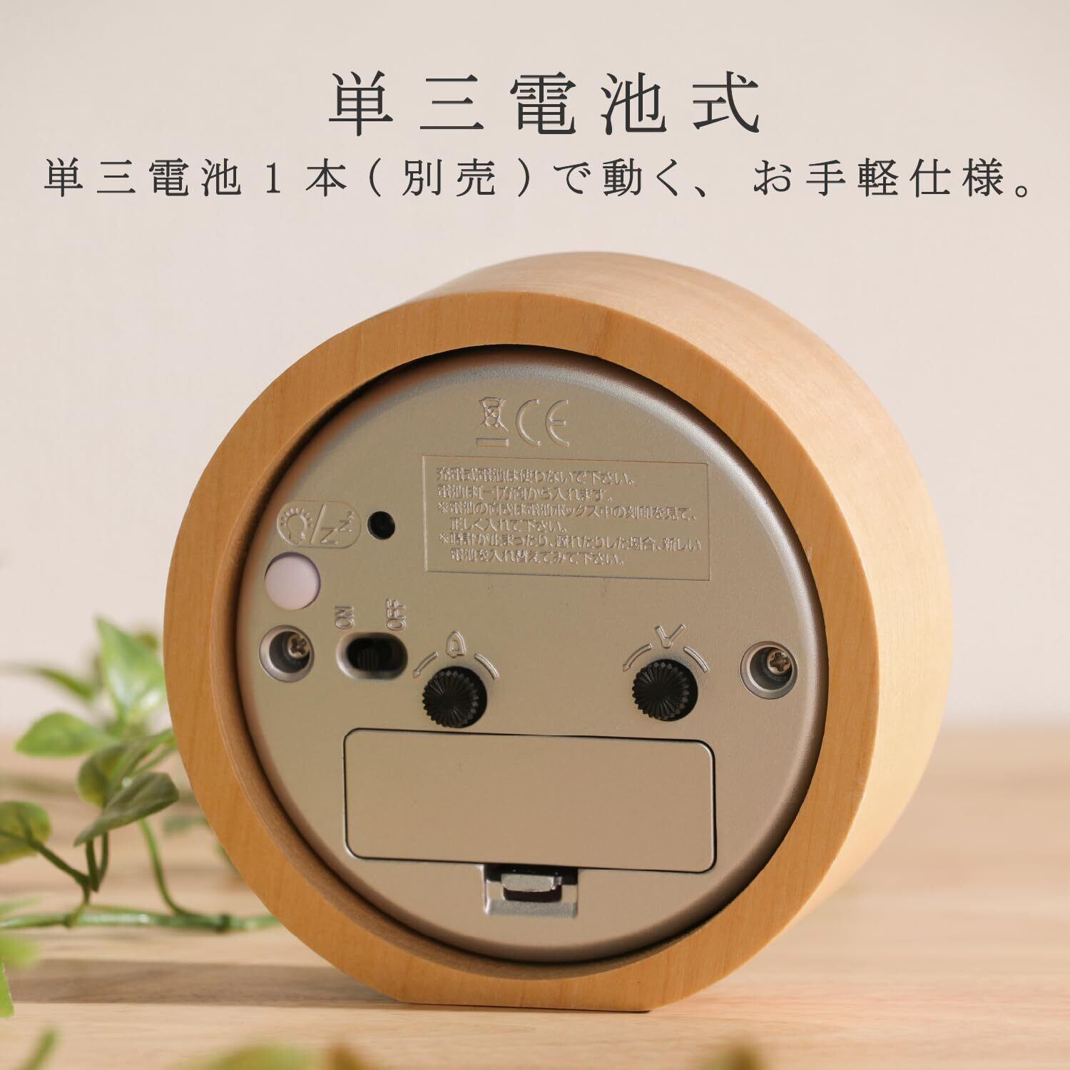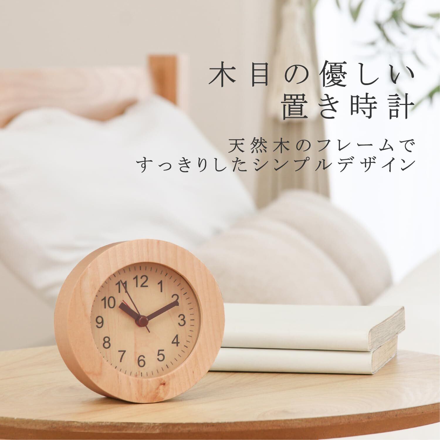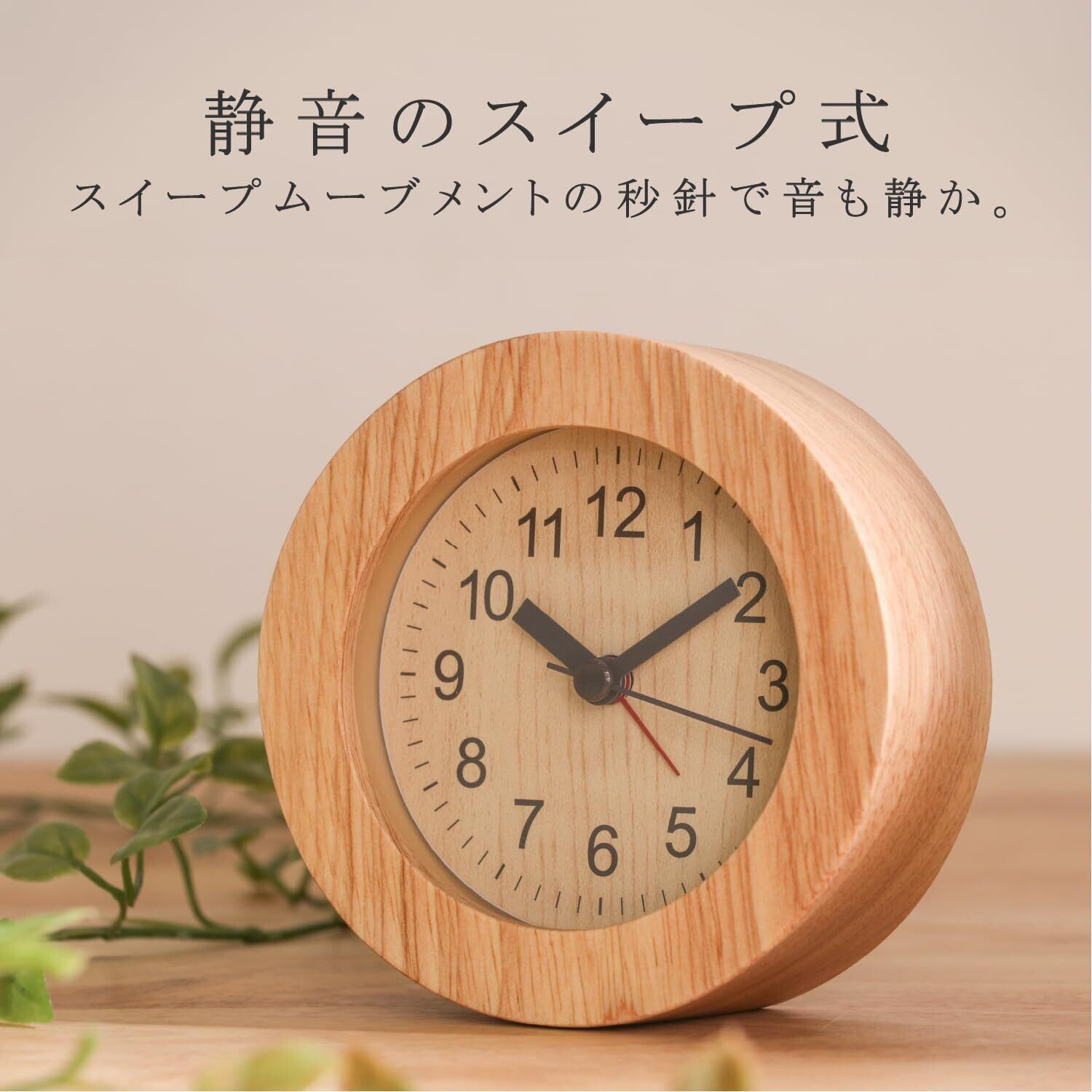 不二貿易(Fujiboeki) 置き時計 目覚まし時計 アナログ 幅10.2cm ナチュラル 天然木 静音式 アラーム付き ライト付 卓上 ラウンド ウッド 36699