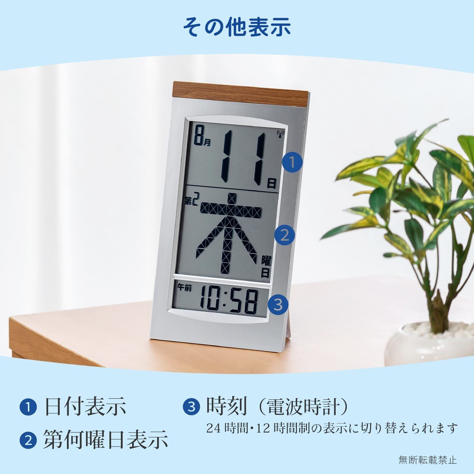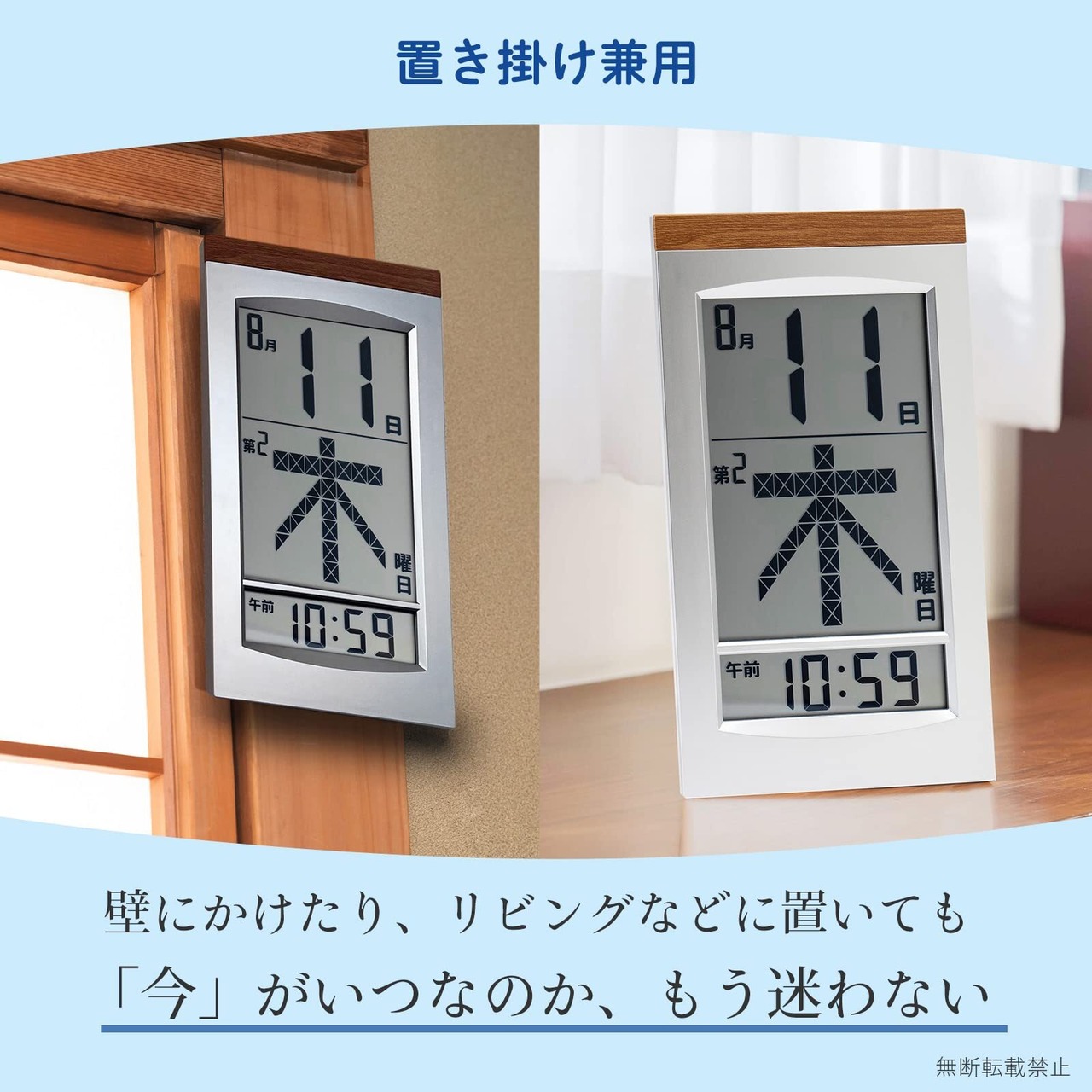 ADESSO(アデッソ) 日めくりカレンダー 電波時計 デジタル メガ曜日日めくり電波時計 置き掛け兼用 シルバー HM-704