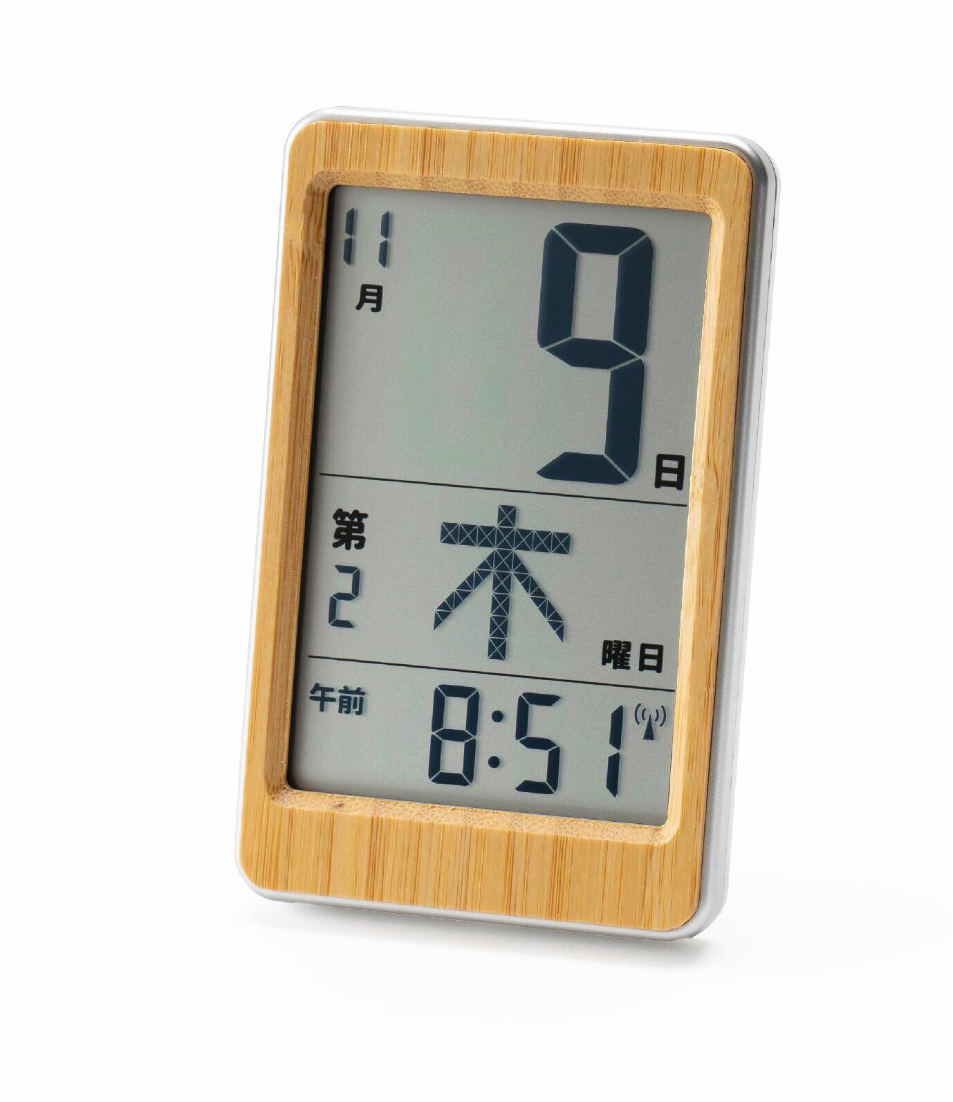 ADESSO(アデッソ) 竹のミニ日めくりカレンダー デジタル HM-003 和室に合う 天然竹 電波時計 見やすい液晶 デスク 置き掛け兼用 電子 認知症 高齢 小さい時計
