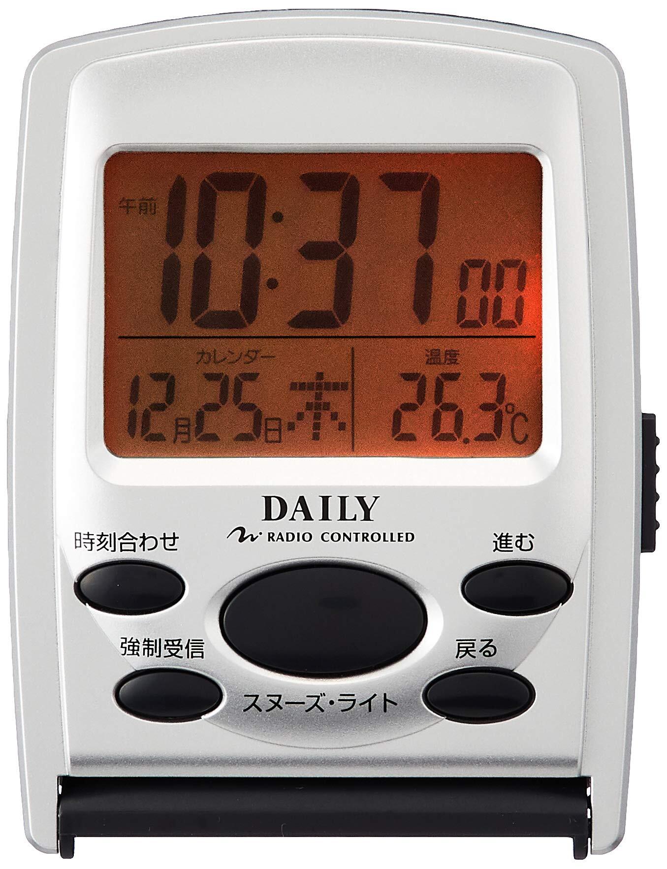 リズム(RHYTHM) 目覚まし時計 電波時計 デジタル 旅行 用 携帯 トラベル クロック 銀色 DAILY (デイリー) ジャストウェーブR107DN 8RZ107DN19