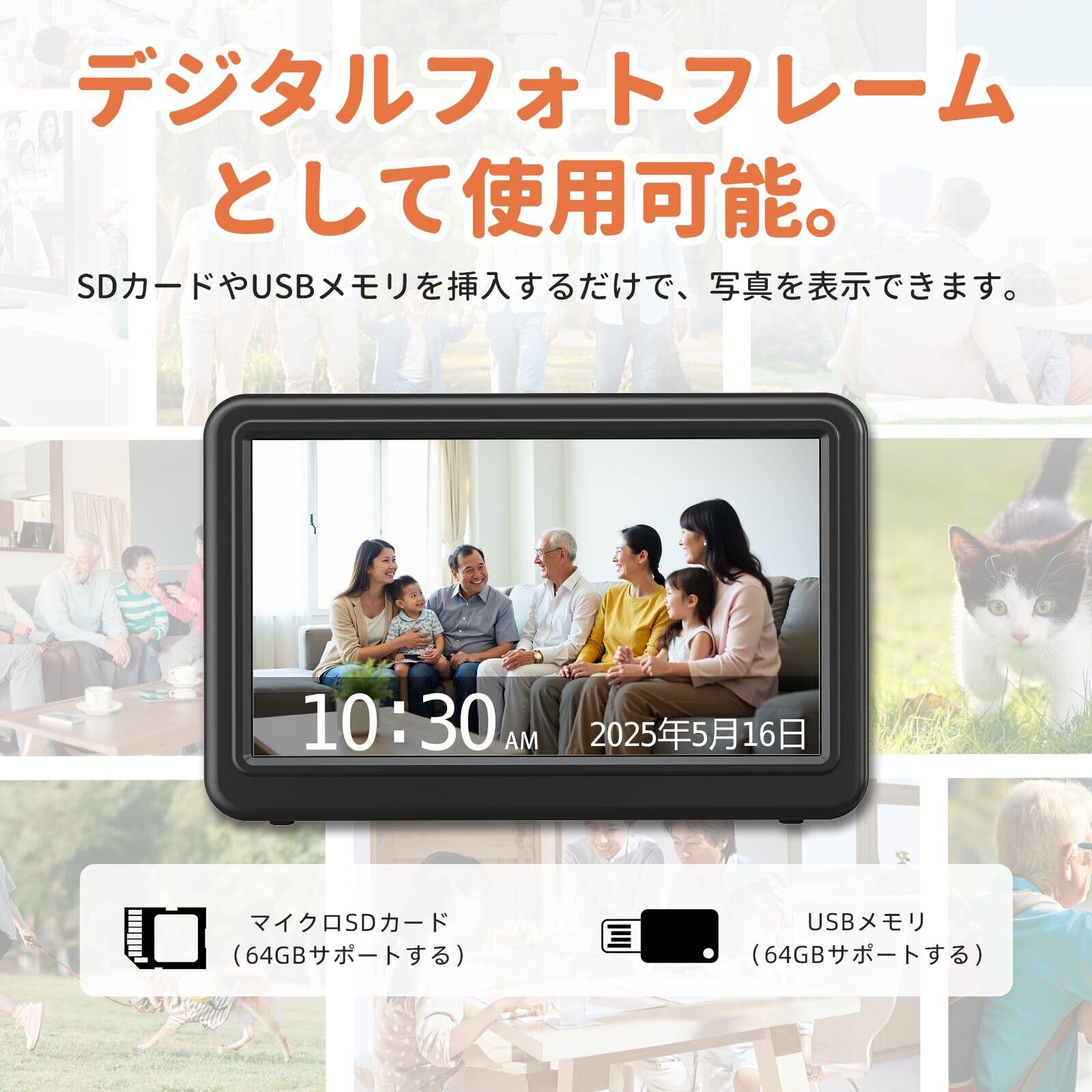 【デジタルフォトフレーム機能付きの魅力的なプレゼント】このCR1029 デジタルカレンダー時計は、デジタルフォトフレームとしても使用できます。大切な家族や友人の写真を表示し、部屋を温かみのある空間に仕上げることができます。プレゼントとしても最適で、高齢者や家族に贈ると喜ばれます。ブラックのデザインも、どんなインテリアにも馴染み、美しく存在感を放ちます。