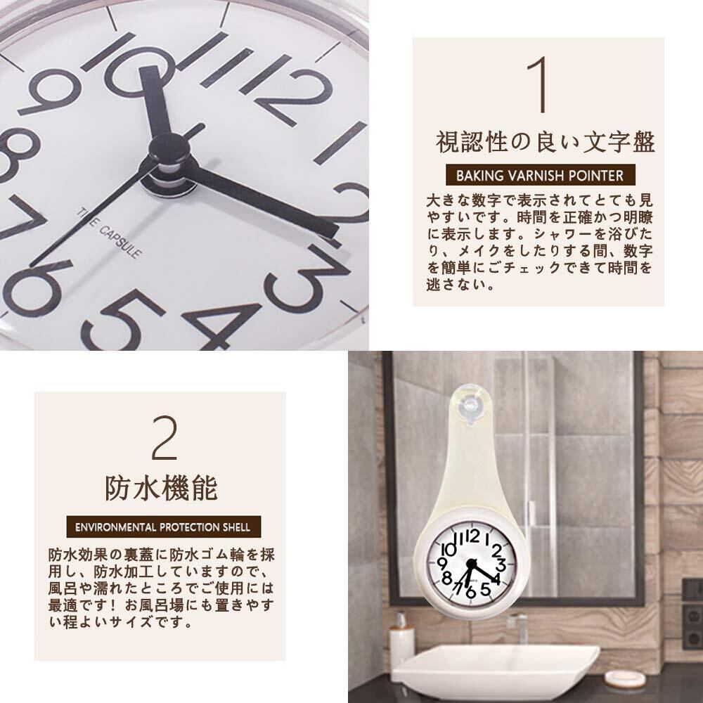 【二つの固定方法】そのままフックに掛けても、タオル掛け等に吊り下げても、吸盤を使って鏡やガラス、タイル等に吸着してもよい時計。吸盤は滑らかな表面壁にのみ取り付けられています、例えばガラス、タイル、ミラー(鉄含有壁には、吸盤は吸着できないことを予めご了承願います)