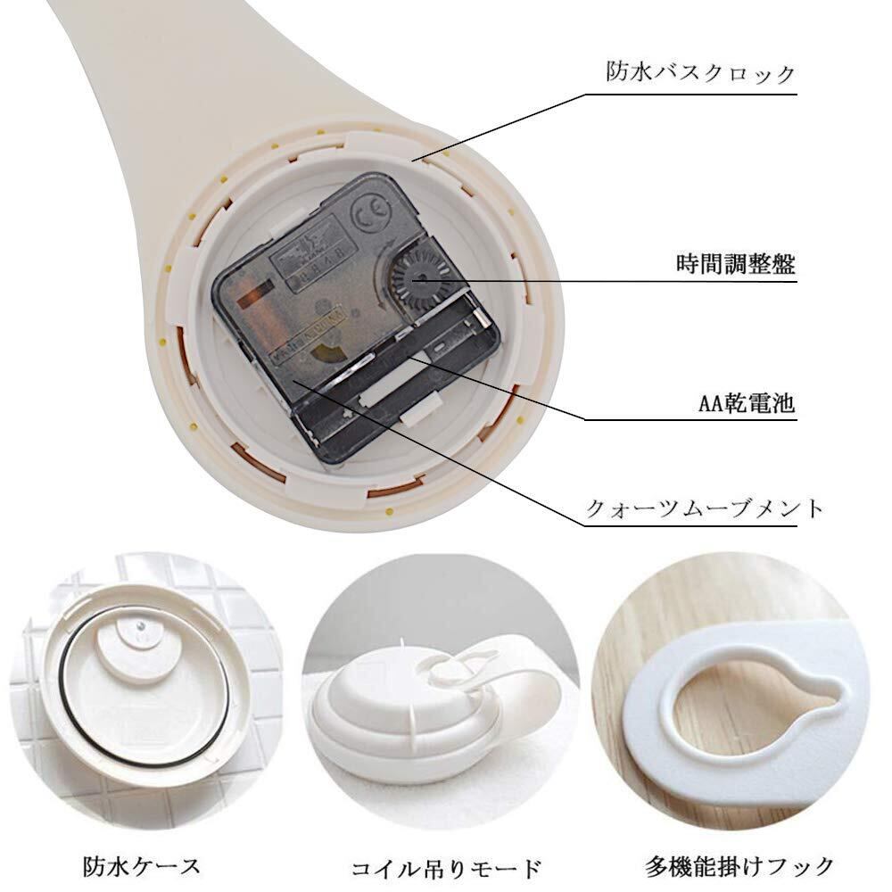 バスルーム時計 防水クロック シャワーデジタルクロック 掛け時計 防水 静音 ウォール キッチン お風呂 家庭用 (白色)