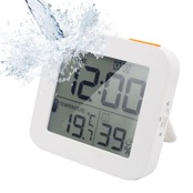 時計 デジタル時計 防滴型防水 タイマー 温度計 湿度計 LCDディスプレイ 目覚まし時計 お風呂時計 壁掛け 卓上置き 浴室 バスルーム 洗面所 台所 部屋用 中庭 ルーム シャワー用(ホワイト)