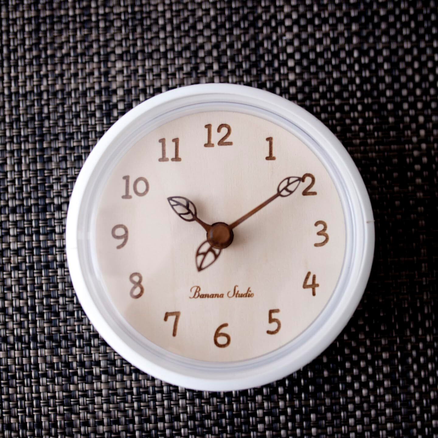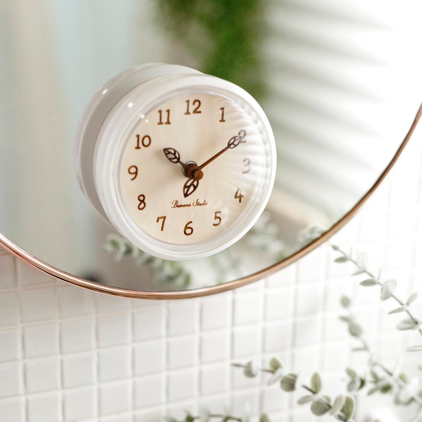 アイビーウッド浴室時計 置き時計 壁掛け時計 無音【バナナ工房】 12×12×6cm 181g軽量 時計 寝室 リビング オフィス 北欧
