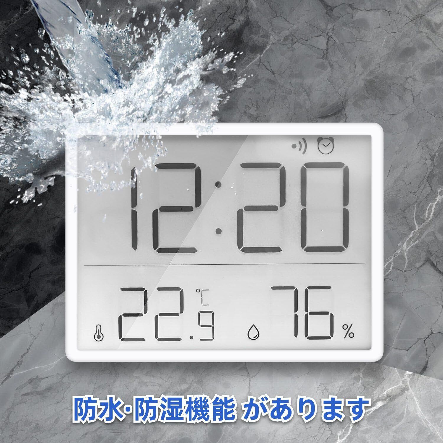 温度計 湿度計 時計 マグネット 高精度 温湿度計 デジタル 大画面 環境目安表示 快適 高湿 乾燥 時間日付表示 最高最低温湿度メモリー機能 マグネット 置き掛け兼用(ホワイト)
