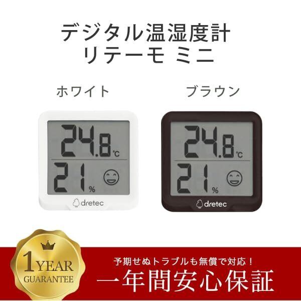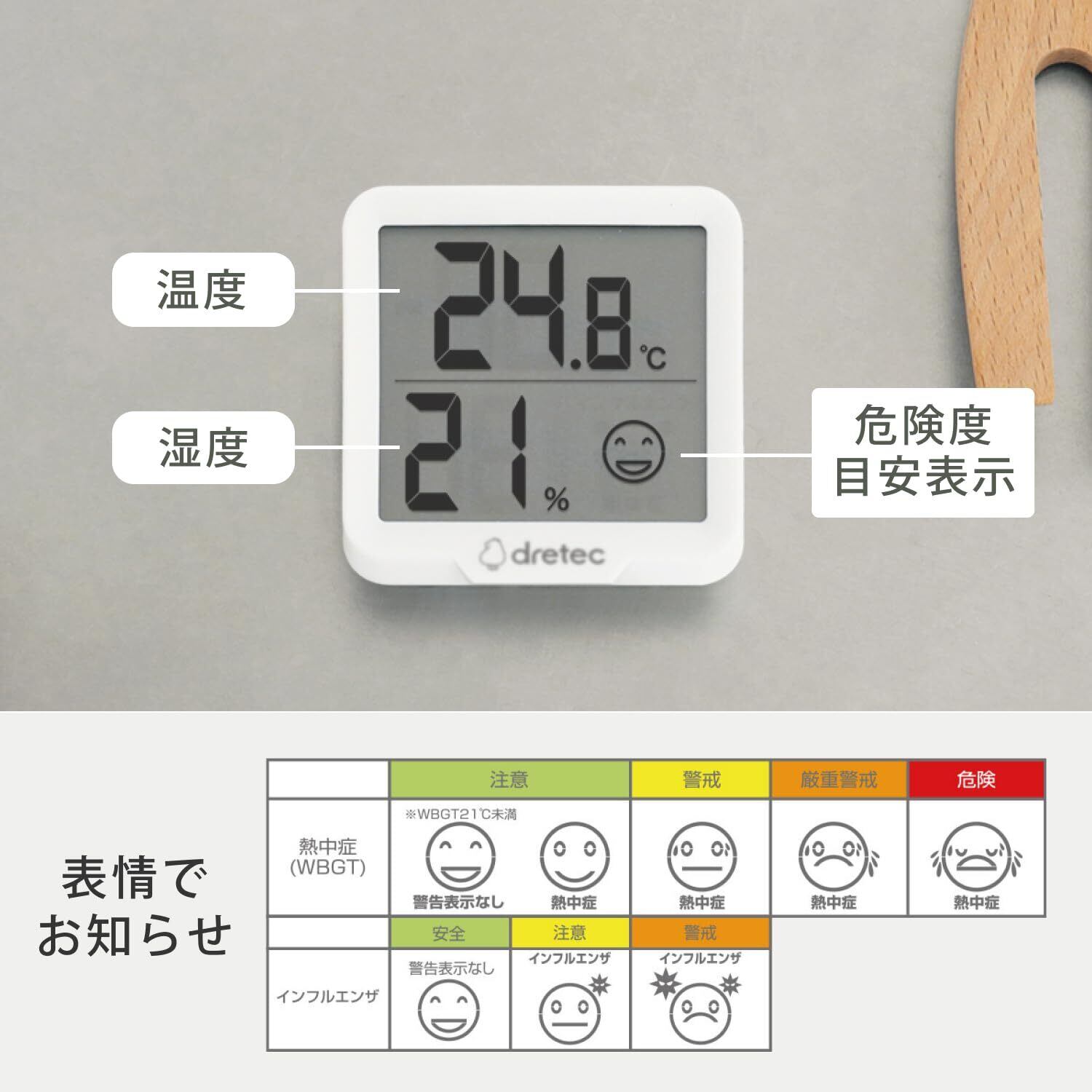 ドリテック(dretec) デジタル温湿度計 リテーモミニ デジタル 熱中症対策 5.5cm インフルエンザ 表情でお知らせ 温度 湿度 ホワイト
