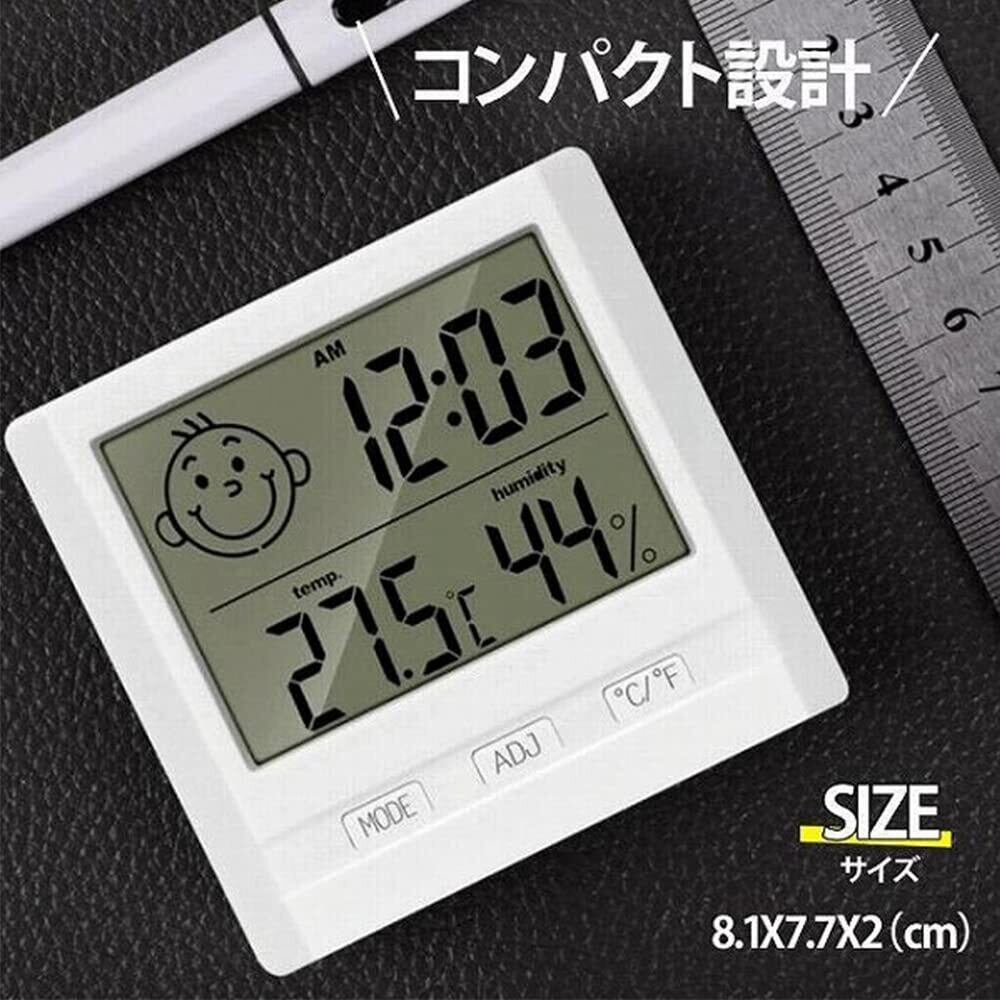 【顔文字でお知らせ】 赤ちゃんの健康管理 オフィス 卓上湿度計 デジタル温度計デジタル室内温湿度計 置き掛け両用タイプ LCD大画面 コンパクト 肌の潤い インフル対策用 乾燥対策 熱中症予防 出産お祝いプレゼント ホワイト 説明書付