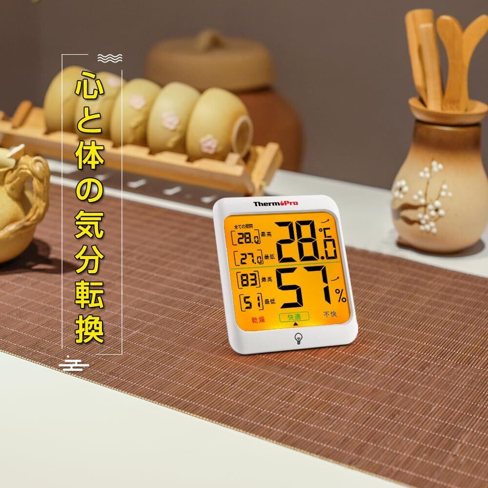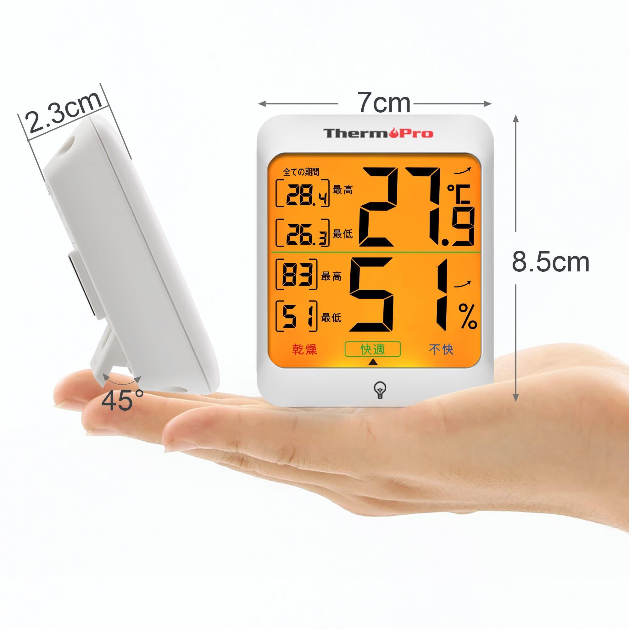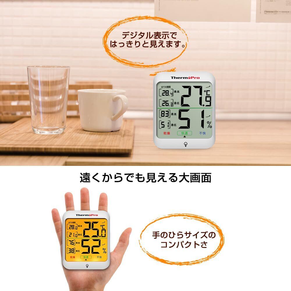 ThermoProサーモプロ 温湿度計 室内温度計デジタル 室内温度計湿度計 LCDバックライト付き 最高最低温湿度値表示 24時間データ記録 高精度 見やすい 快適度表示 インテリア 赤ちゃん 家庭用 三WAY設置 TP53