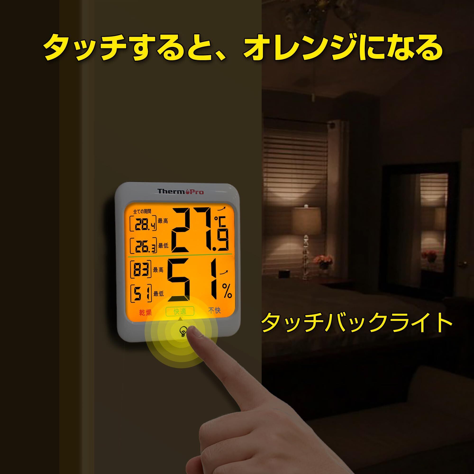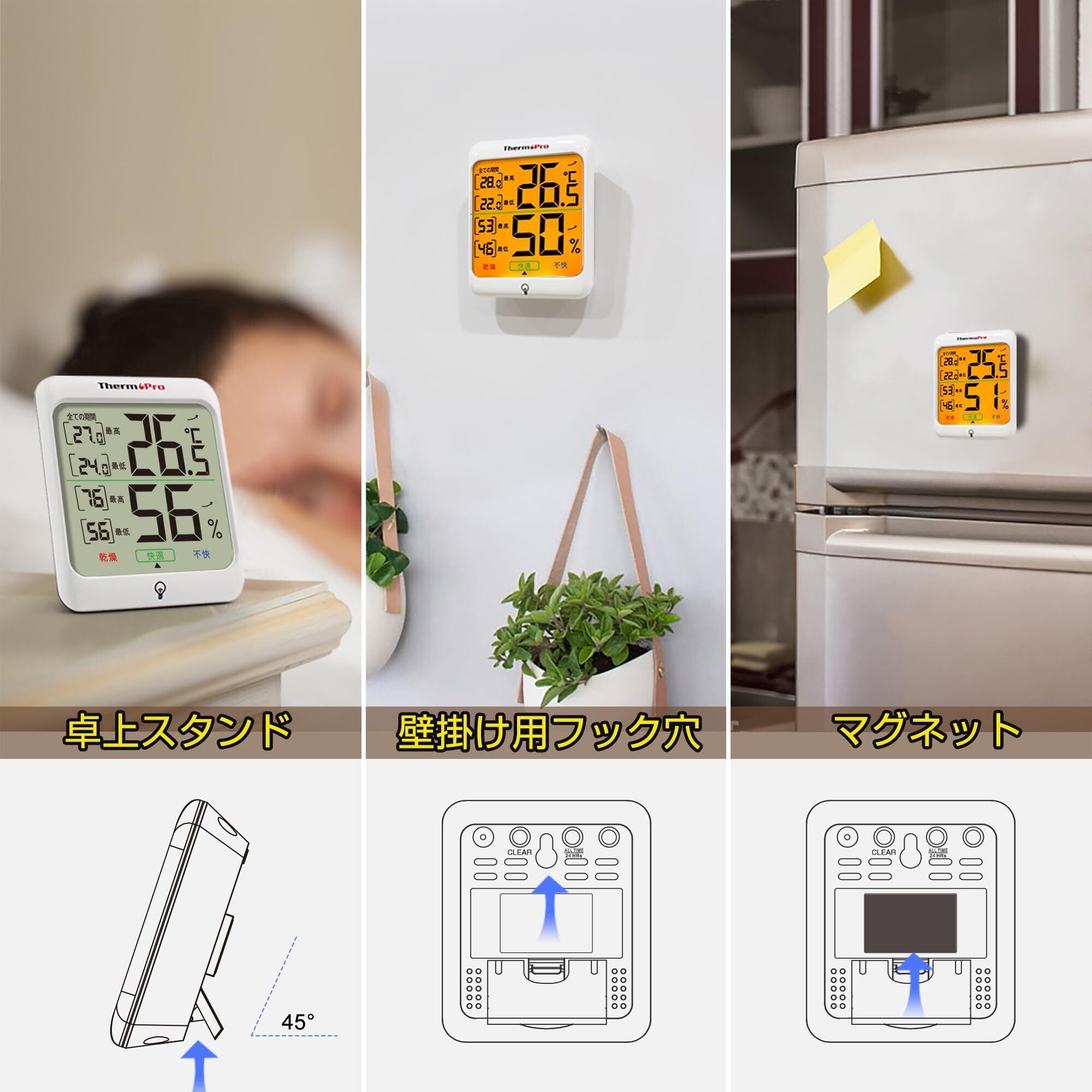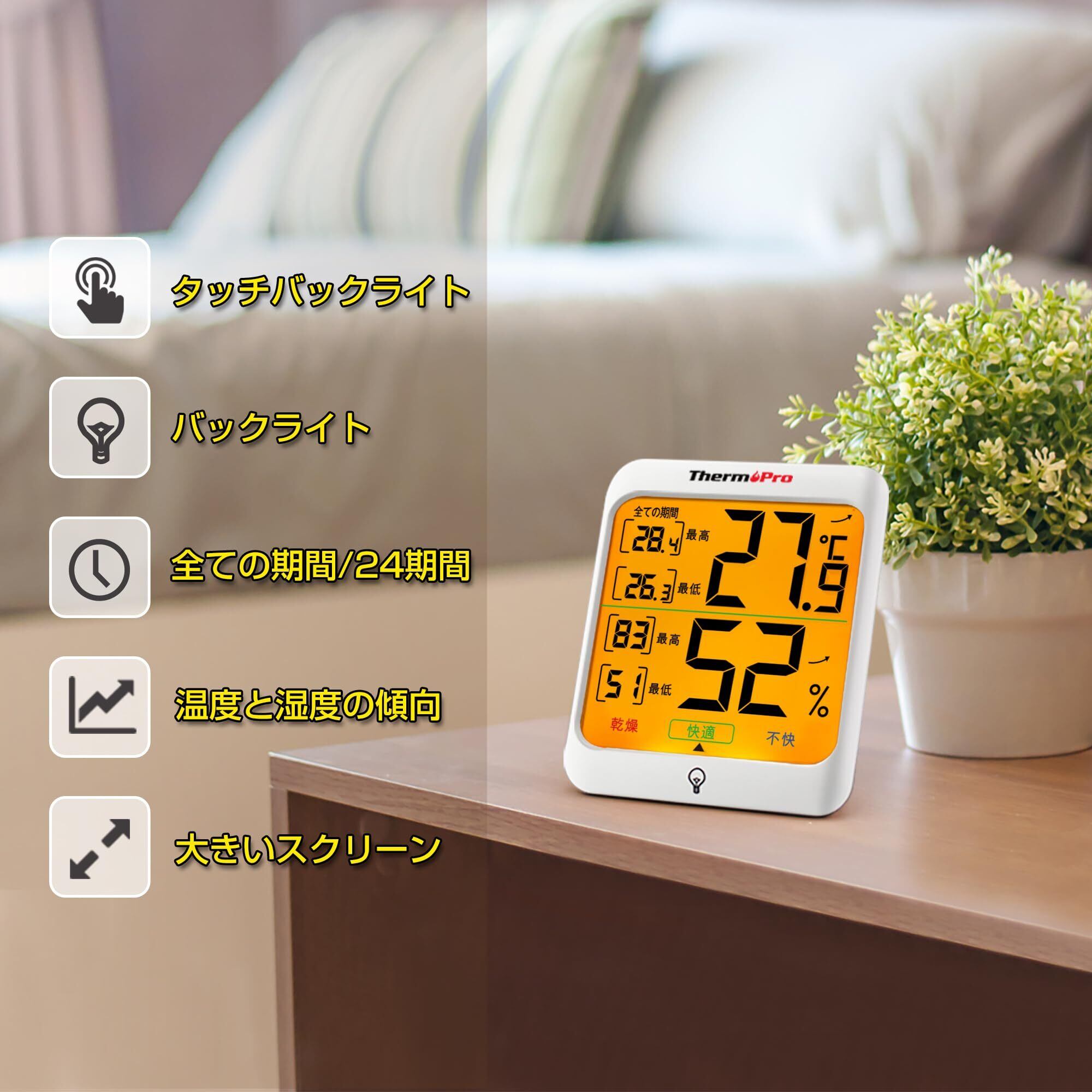ThermoProサーモプロ 温湿度計 室内温度計デジタル 室内温度計湿度計 LCDバックライト付き 最高最低温湿度値表示 24時間データ記録 高精度 見やすい 快適度表示 インテリア 赤ちゃん 家庭用 三WAY設置 TP53