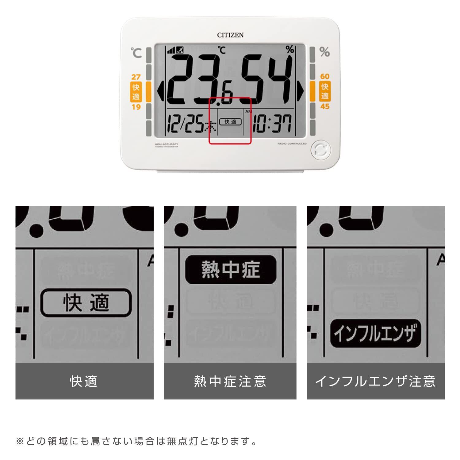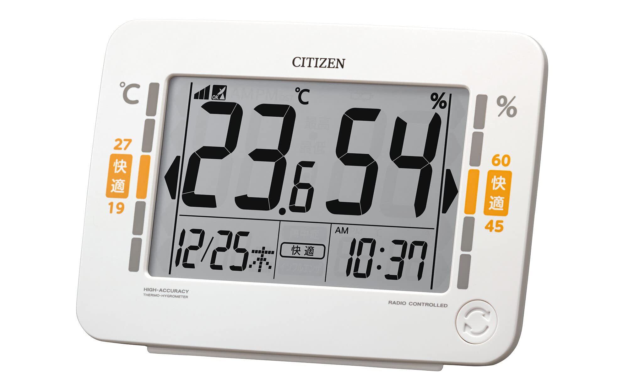 リズム(RHYTHM) シチズン 温度湿度計 高精度 デジタル (電波時計 機能付き) カレンダー 環境目安表示 ホワイト (白) CITIZEN 13.2x18.6x5.3cm 8RZ232-003