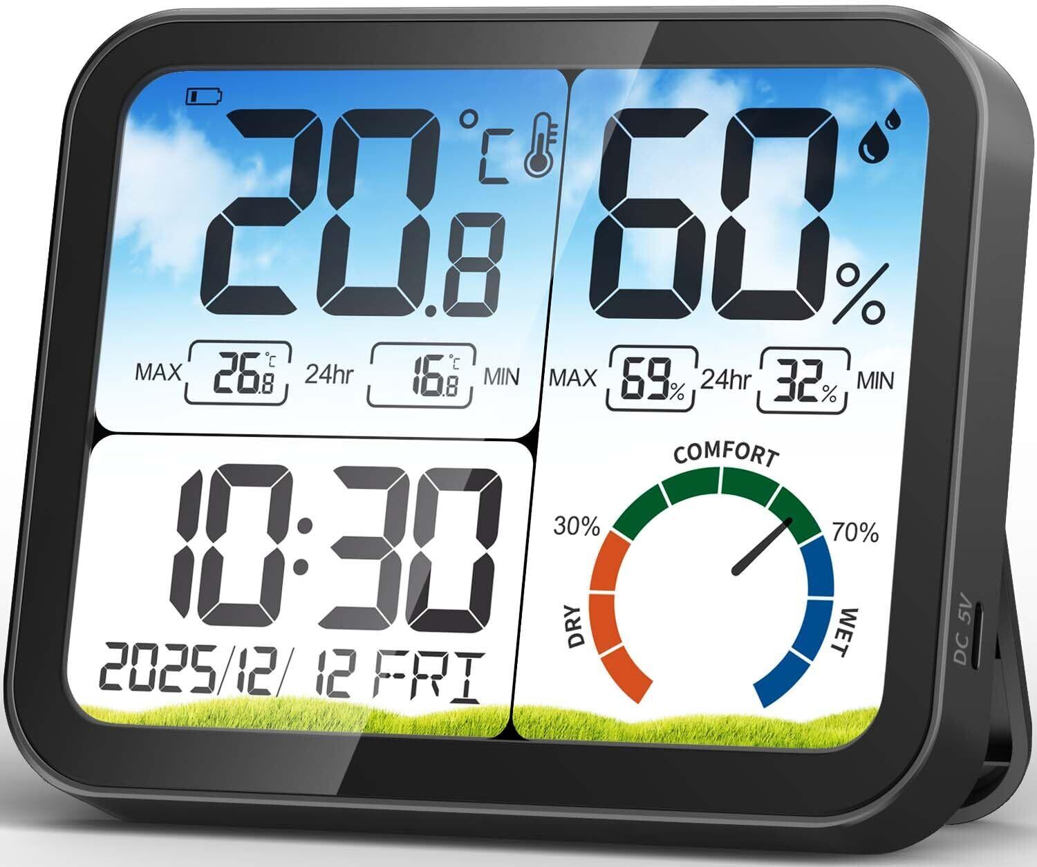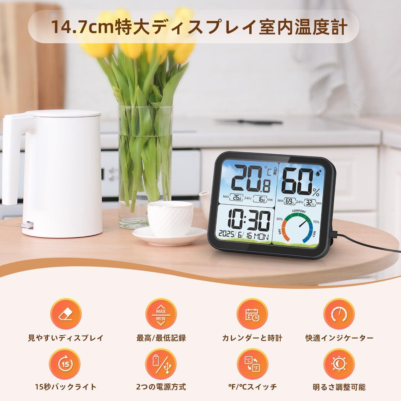 VOCOO デジタル湿度計 温度計 室内 - 14.7cm 特大ディスプレイ 正確な湿度計 室内温度計 環境快適度表示 校正機能付き 最高最低記録機能 快適性 バックライト 日付と時計付き