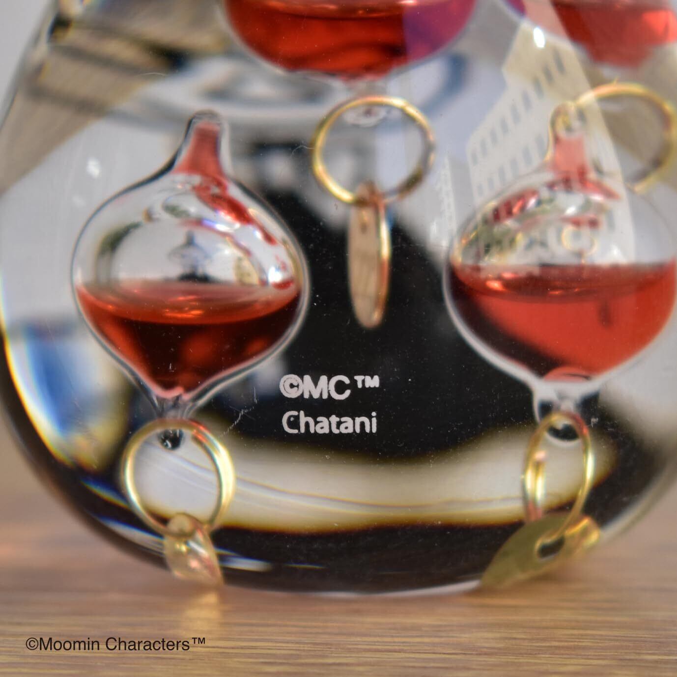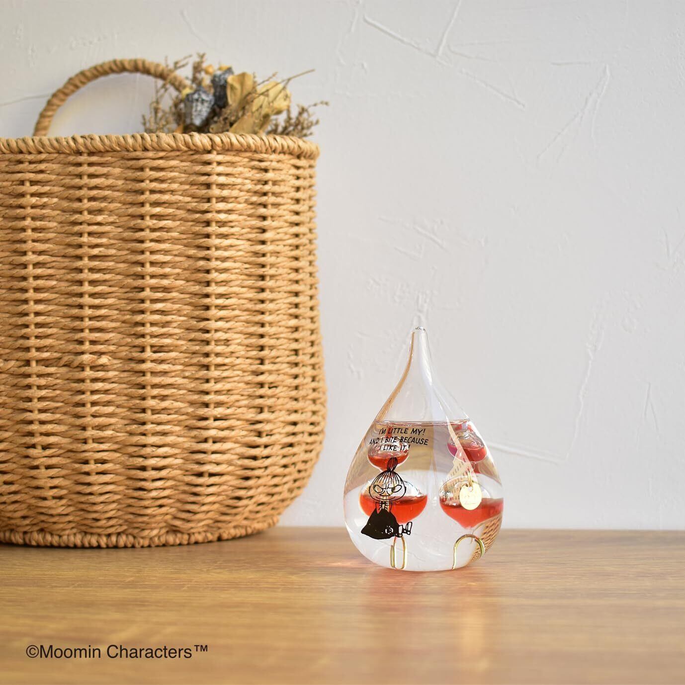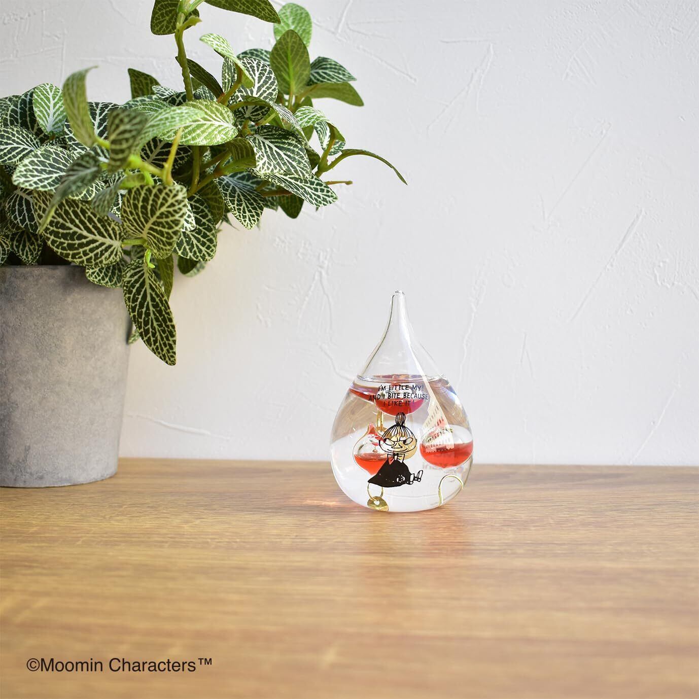 気温によって液体内のガラス球(複数)の浮き沈みが変化する、不思議なインテリア置物「ガラスフロート温度計」に、かわいいリトルミイデザインが登場。