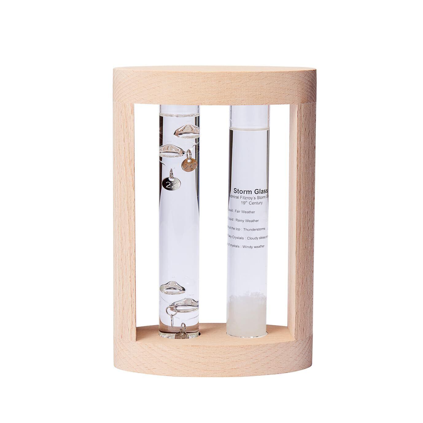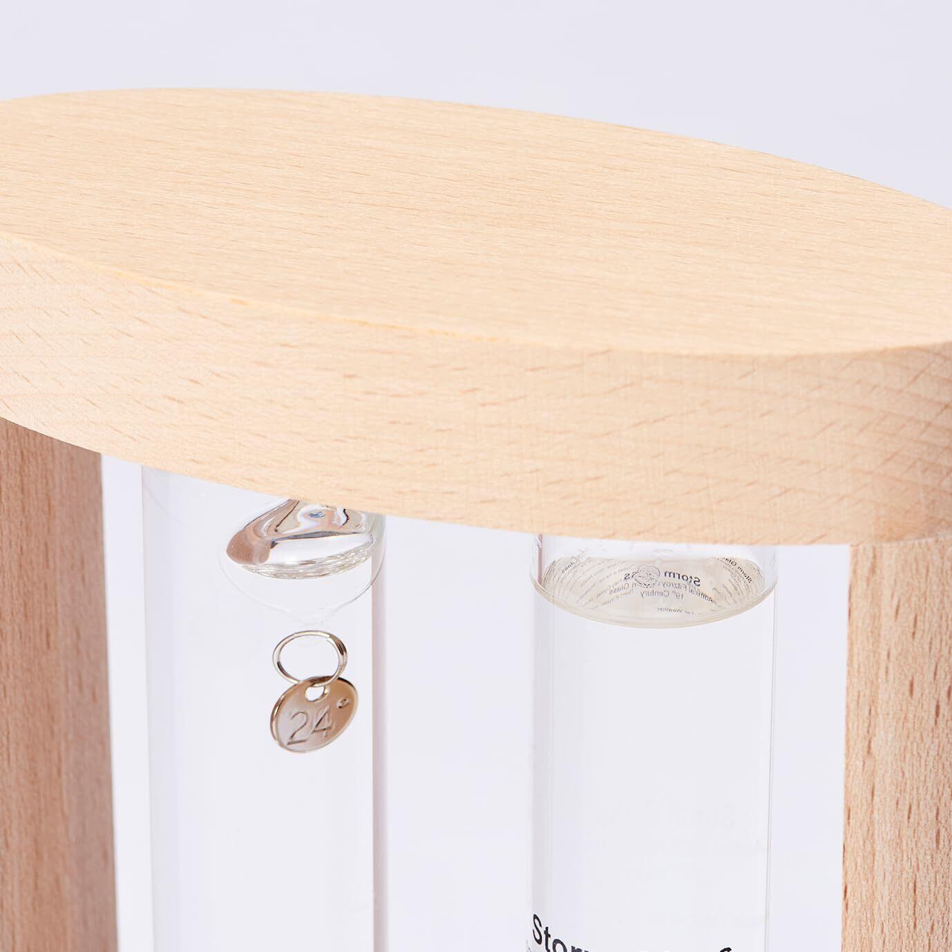 材質:フレーム/天然木(ビーチ材)、温度計/ホウケイ酸ガラス、パラフィンオイル他、ストームグラス/ホウケイ酸ガラス、水、エタノール、天然樟脳他