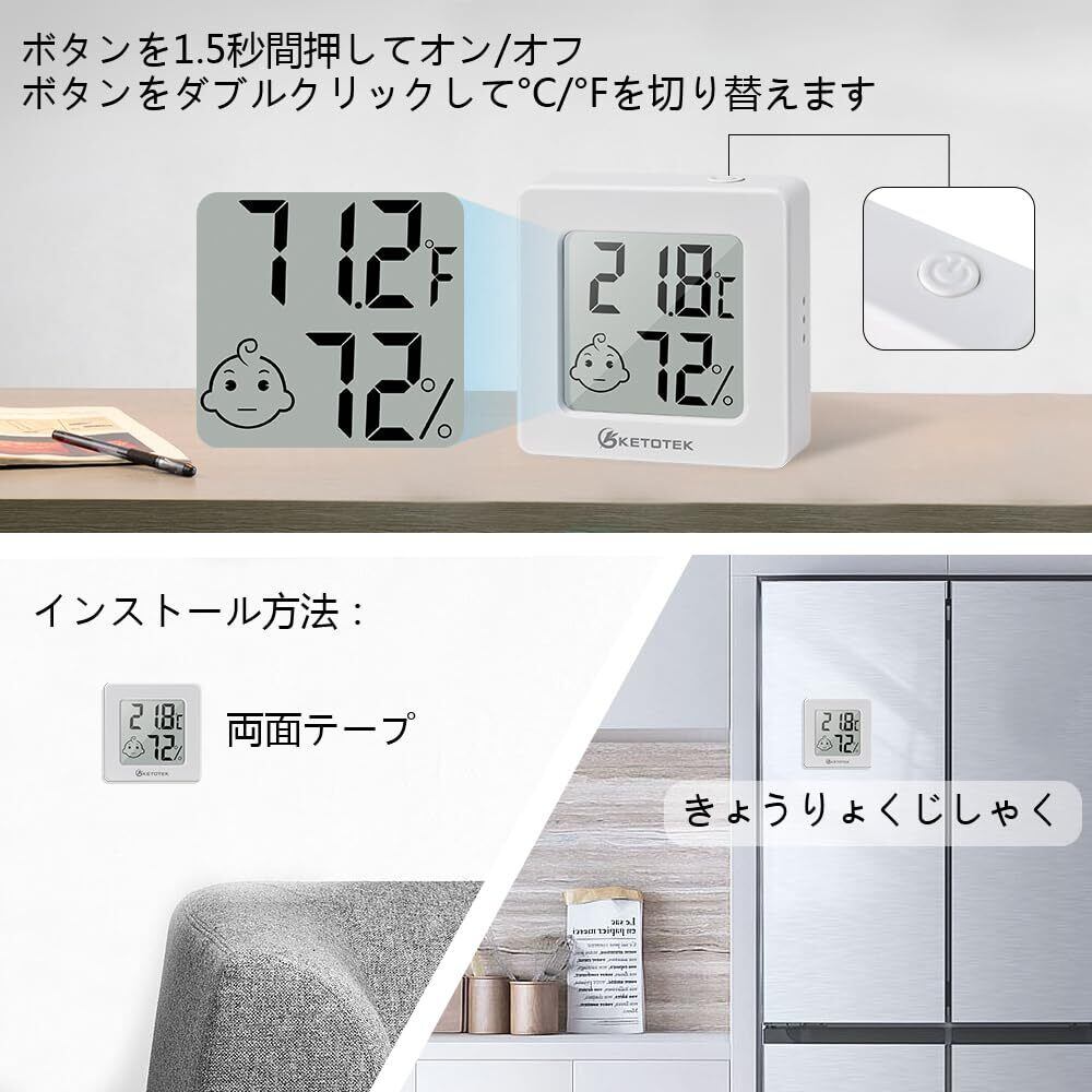 KETOTEK 2個 室内 温度計湿度計 デジタル 小型室温計 湿度計 壁掛け 卓上 マグネット 顔マーク付き