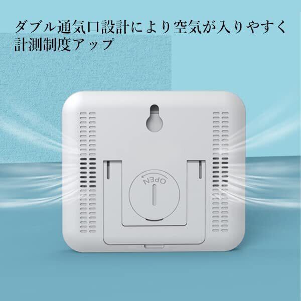 この温湿度計には、時計、アラーム、カレンダー機能も搭載されています。時間管理や目覚まし機能を併せ持つため、デスクやベッドサイドに置いても非常に便利です。また、壁掛けと卓上の両方で使用でき、多様なニーズに対応します。