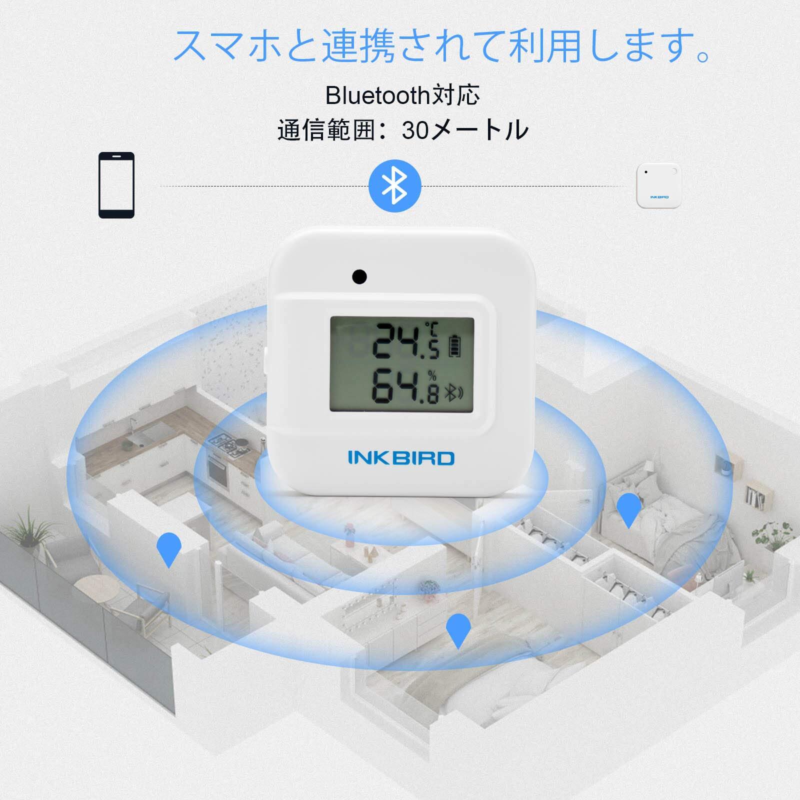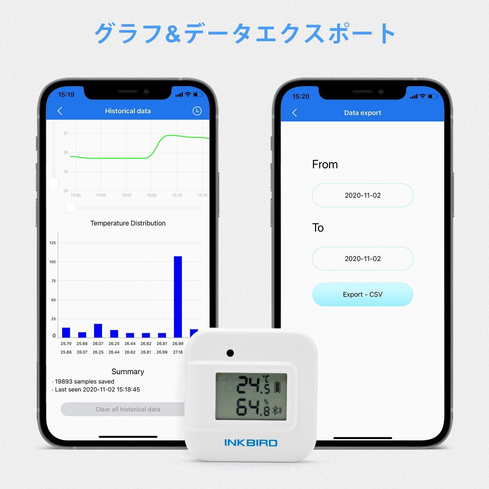 Inkbird Bluetooth温湿度計 温度計 湿度計 アラーム付き スマートセンサー グラフ表示 データロガー データのエクスポート iOS/Androidアプリで温度管理 爬虫類 温室 ヒュミドール ワインセラー IBS-TH2 PLUS(温度プローブ付き)