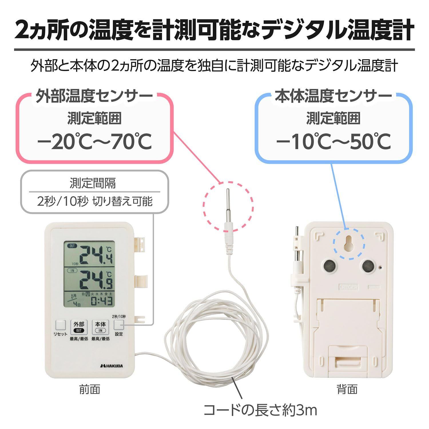 ハクバ HAKUBA 温度計 デジタル内外温度計 IN-OUT温度計 防滴 室内外温度 置き掛け両用 熱中症予防 ペットや園芸 キャンプやアウトドアにも 4977187329841 AMKMCIOTM