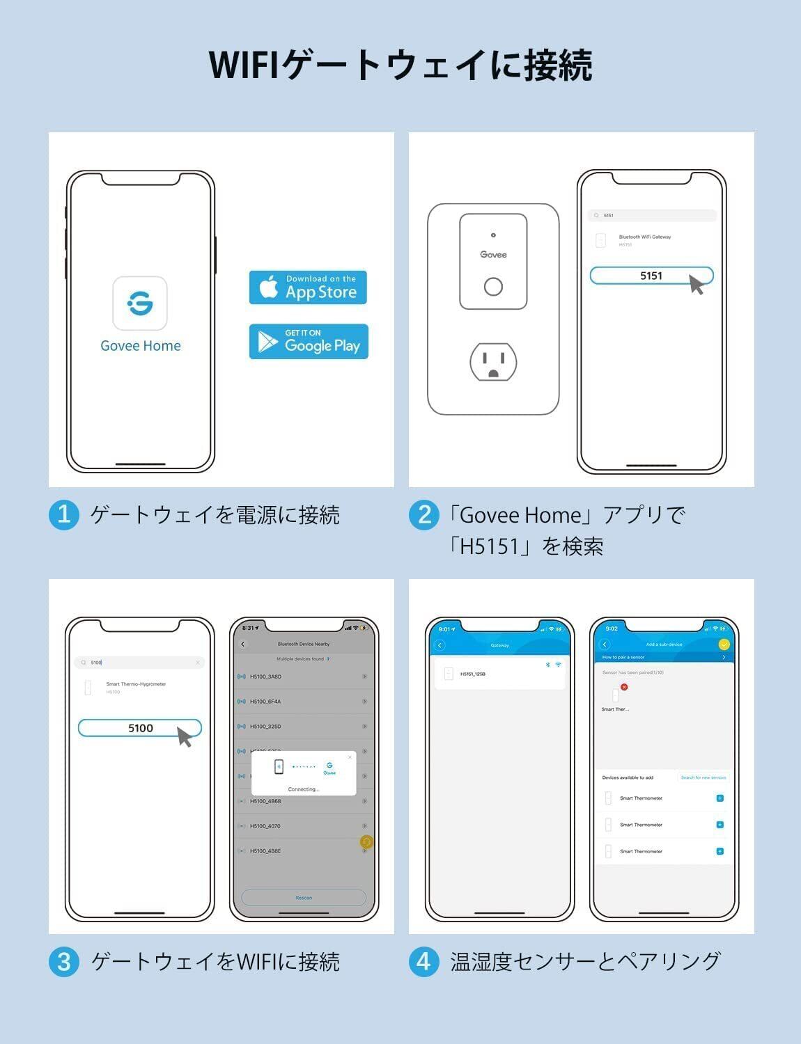 【WIFI接続・ゲートウェイで一括管理】左側のビデオに従ってWIFIゲートウェイとセンサーに接続できます。スマホで温湿度センサーを一括で管理できて便利です。