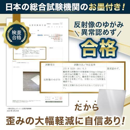 【歪みを大幅軽減】 従来のアクリルミラーはガラスに比べて「歪み」が課題でしたが、本製品は歪みを大幅に軽減しています。