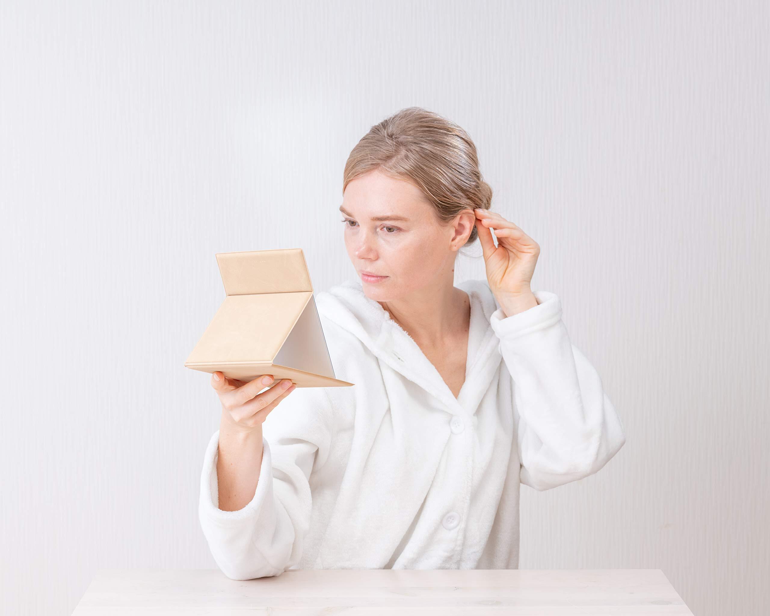 【正しい肌色を映し出すのミラー】ナピュア フォールディングミラーは、くすみの原因となる鉄分をより多く取り除いた透明度の高いガラスと、色の再現性が高い反射金属との組み合わせにより、本来の姿をありのままに映し出すを取得したミラーです。(番号:PAT3732490) 肌の色が鮮明に映ることで、自分に合ったファンデーションの色味がわかり、メイクの仕上がりが格段よくなるため、美容業界のプロの方々にも支持されています。また有害な鉛成分を全く含まない、人と環境にやさしいミラーです。
