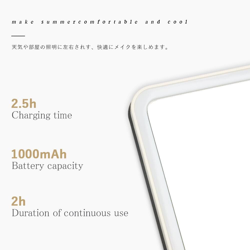 ❂大容量充電式バッテリーが使用されており、フル充電の状態では数時間の連続使用ができます。毛穴・つけまつげ・アイメイクなど細部までチェックでき、メイク全体を繊細でパーフェクトに仕上げます。