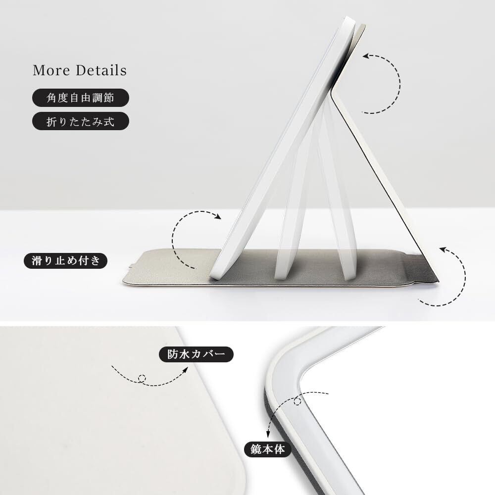 Cerdeco 折りたたみミラー LED化粧鏡 卓上ミラー 手鏡 USB充電式 タッチパネル操作 明るさ調節可能 女優鏡 スタンドミラー 持ち運びに便利 シンプルデザイン メイクアップ コンパクト PUレザーカバー ホワイト S809