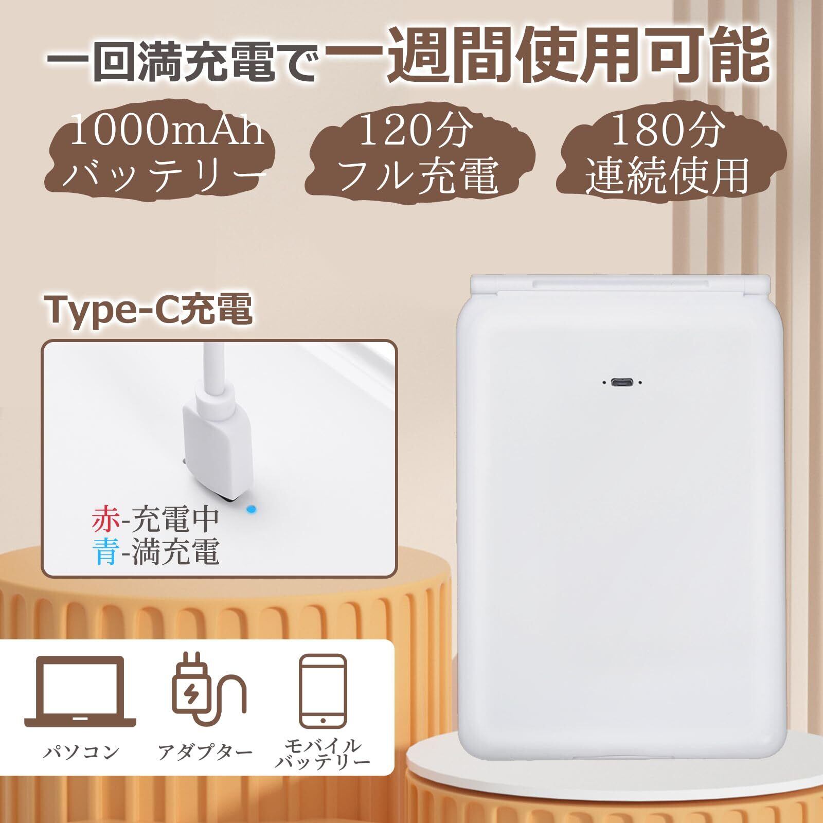 【折り畳め式LED化粧鏡】折りたたみ式女優ミラーは、軽くてコンパクトな設計よりお出かけ時の化粧直しが簡単にできます。高輝度LEDライトが搭載し、光不足や色違い対策となります。1000mAhバッテリーを内蔵し、一回満充電で一週間使用可能です。旅行、休暇、キャンプ、車、ボート、キャラバン、RV、家、洗面化粧台などに最適です。