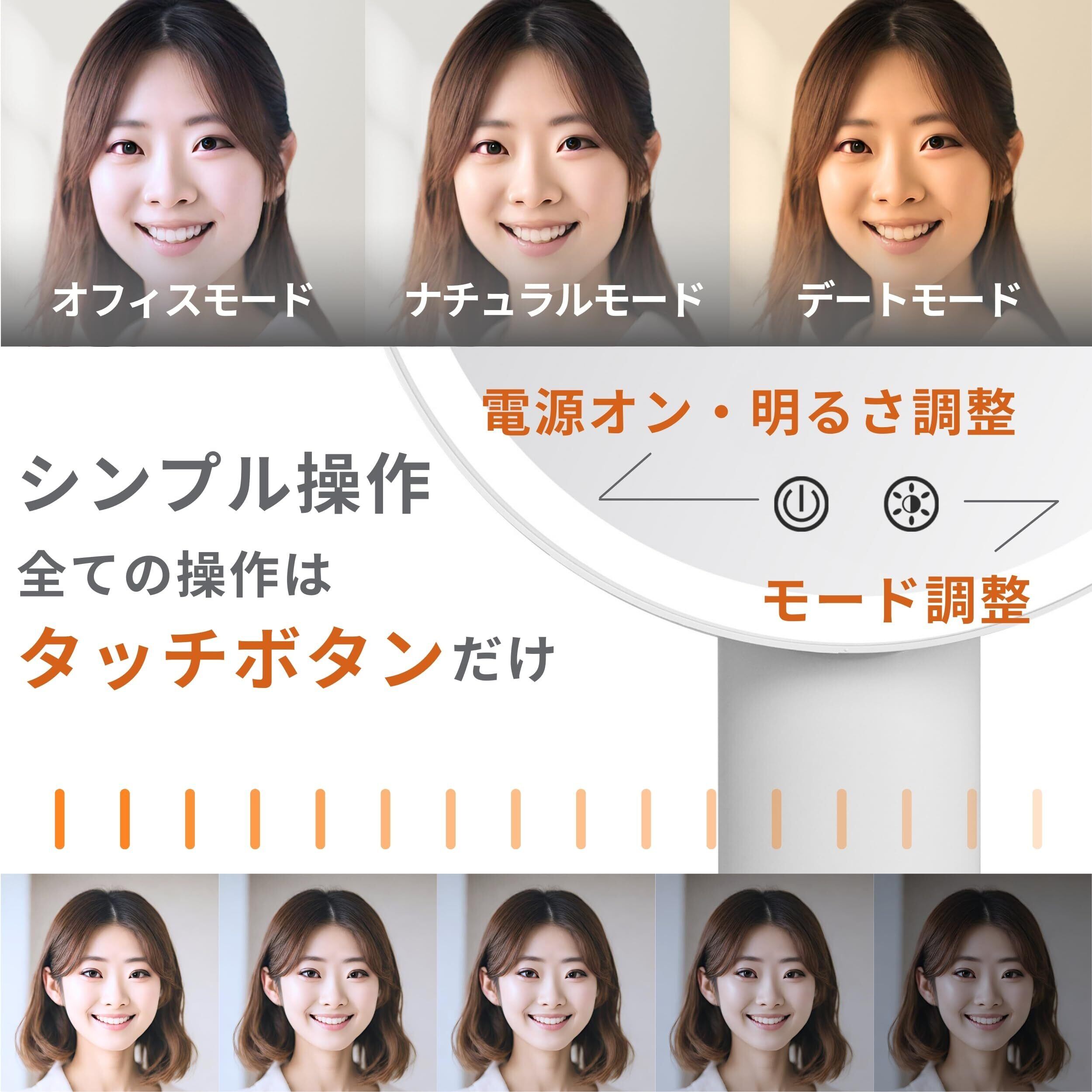 【かわいい・多機能】ポール型のスタンドミラーでオフホワイト、ソリッドピンクの2色、おしゃれでかわいい外観としました。明るさ無段階調光 3光色(昼光食/昼白色/電球色)、リチウムイオンバッテリーなど、卓上ミラーを楽しくご利用頂ける機能を搭載しました。