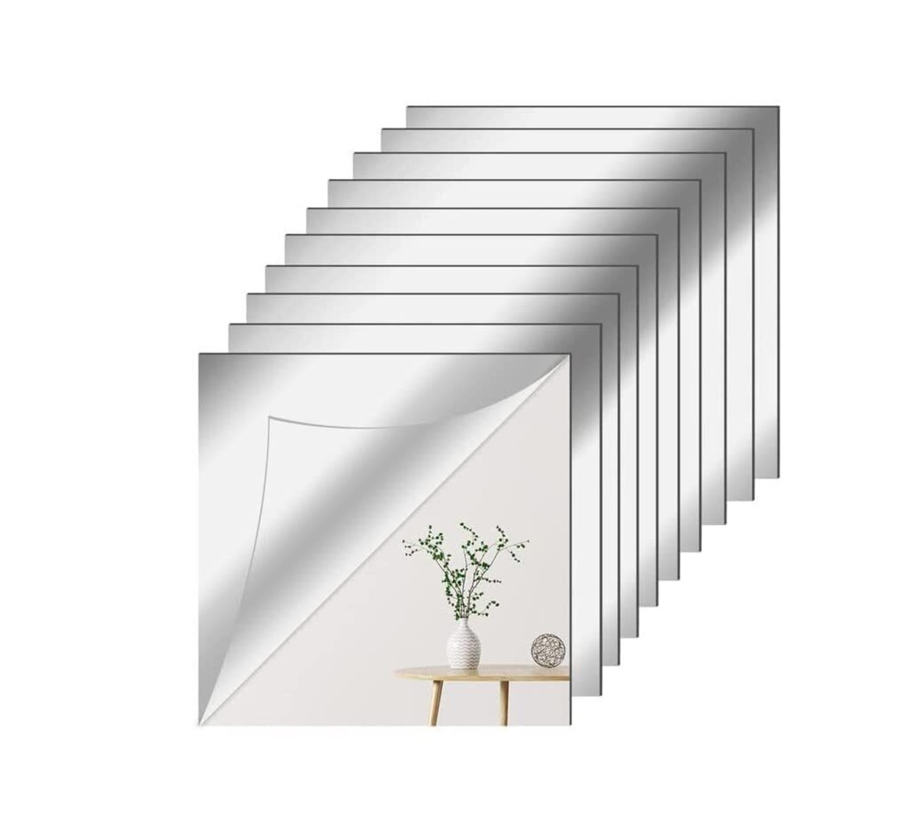 15cm×15cmのサイズで、10枚セットならさまざまなレイアウトが可能です。縦に並べて全身鏡として使用したり、お好みの形に配置してインテリアの一部としても楽しめます。多彩な使い方で、空間のアクセントを演出します。