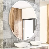 フレームレス設計:ラウンドミラーは、1 インチの面取りされたエッジがあり、直径21.7 インチのフレームはありません。研磨されたエッジは、カットを避けるために滑らかで平坦です