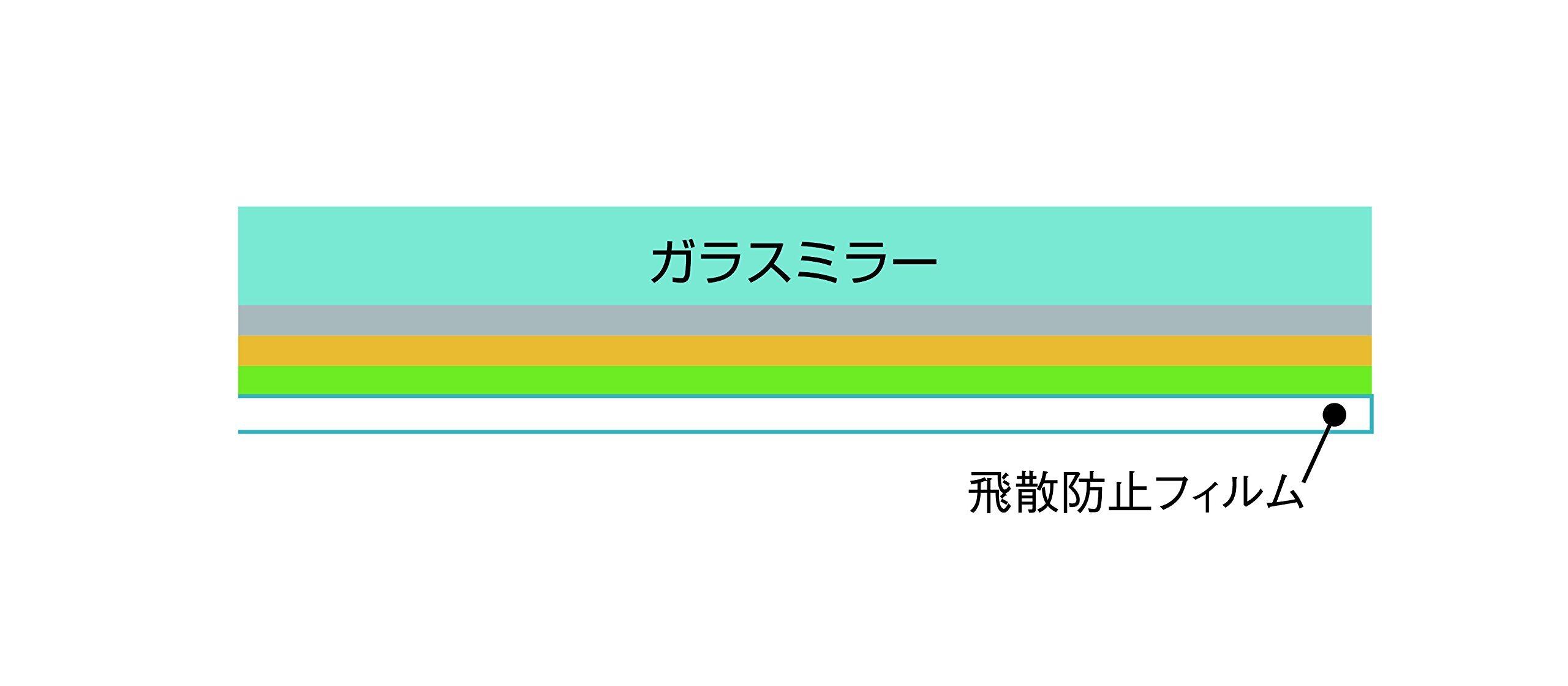 ●鏡の裏面にフィルムラミネート加工を施しています。