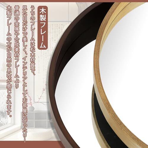 この壁掛けミラーは、ナチュラルなデザインの天然木フレームが特徴です。リビングや玄関、洗面所など、さまざまな空間に温もりとスタイルを与え、インテリアのアクセントとして最適です!