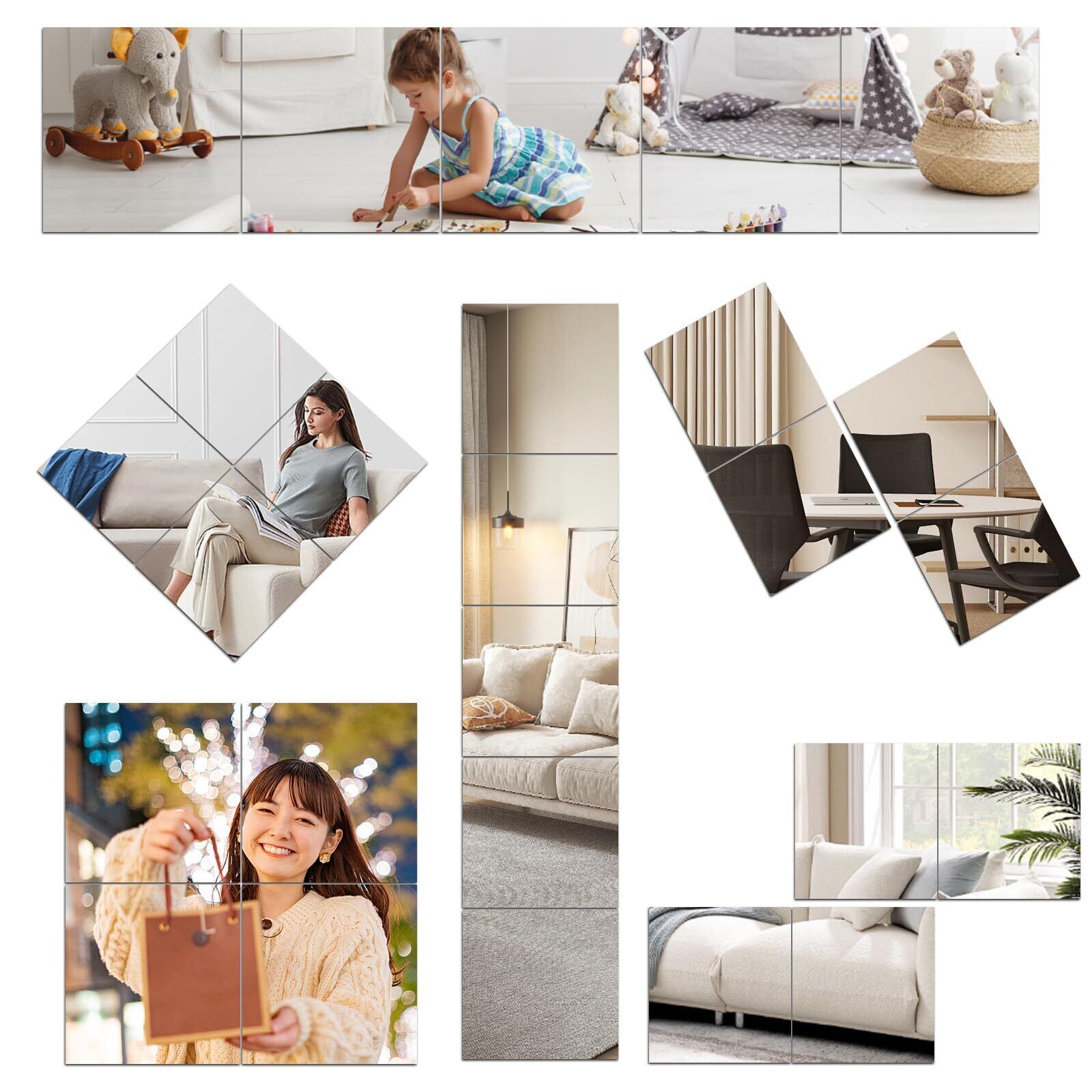 商品仕様:正方形(直角)姿見鏡 10枚セット 本体サイズ:横30cm×縦30cm×厚み0.3cm 専門の粘着シールについては、姿見鏡が壁に固定することができます。