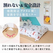 この割れない鏡は、PP素材を使用しているため、万が一の落下時にも割れる心配がありません。お子様やペットのいる家庭でも安全にお使いいただけ、安心してお部屋のさまざまな場所に設置可能です。