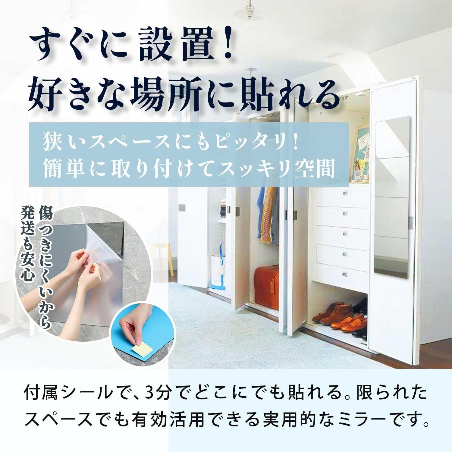 【どこでも貼れる割れない鏡】【割れない】 鏡 全身鏡 姿見鏡 壁掛け ミラー 壁掛け鏡 浴室 便利 穴あけ不要 軽量 (30cm×30cm×4枚セット)