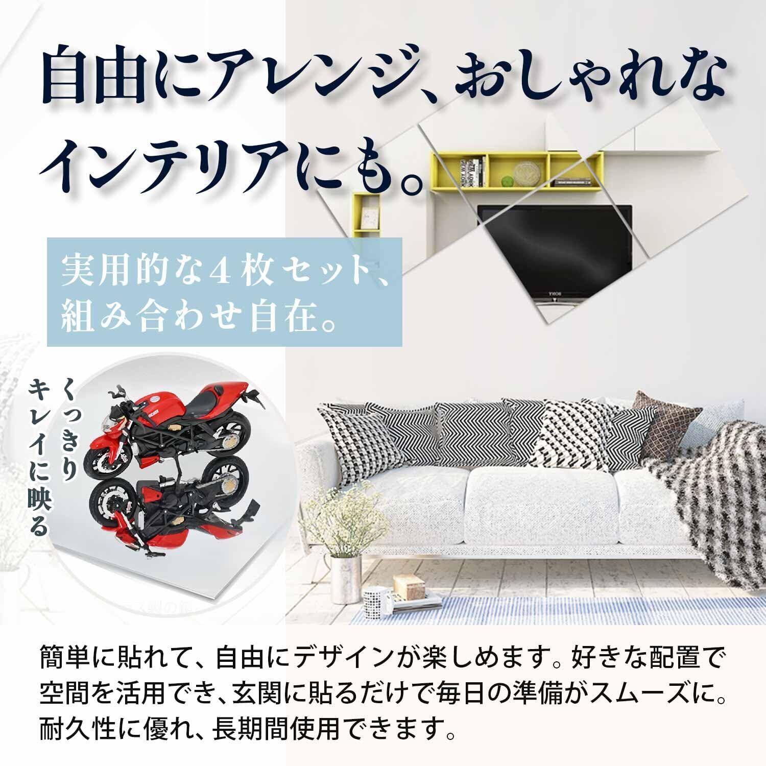 【多様な使い方】4枚セットの商品で、縦に並べれば全身鏡に。ひし形でインテリアとして。一枚で髪型チェックなど配置次第で様々な使い方ができます。