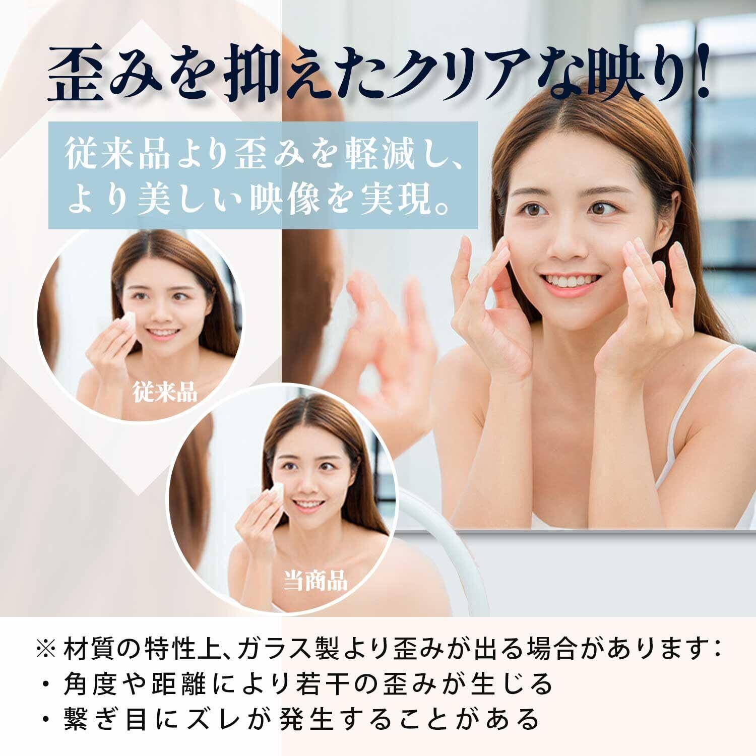 【歪み超軽減】これまでのアクリル製鏡は通常のガラス製鏡に比べると極端に歪みがひどい物が多かったです。当製品は歪み軽減に徹底的にこだわり、近距離ではガラス製に近い感覚で使用可能です。