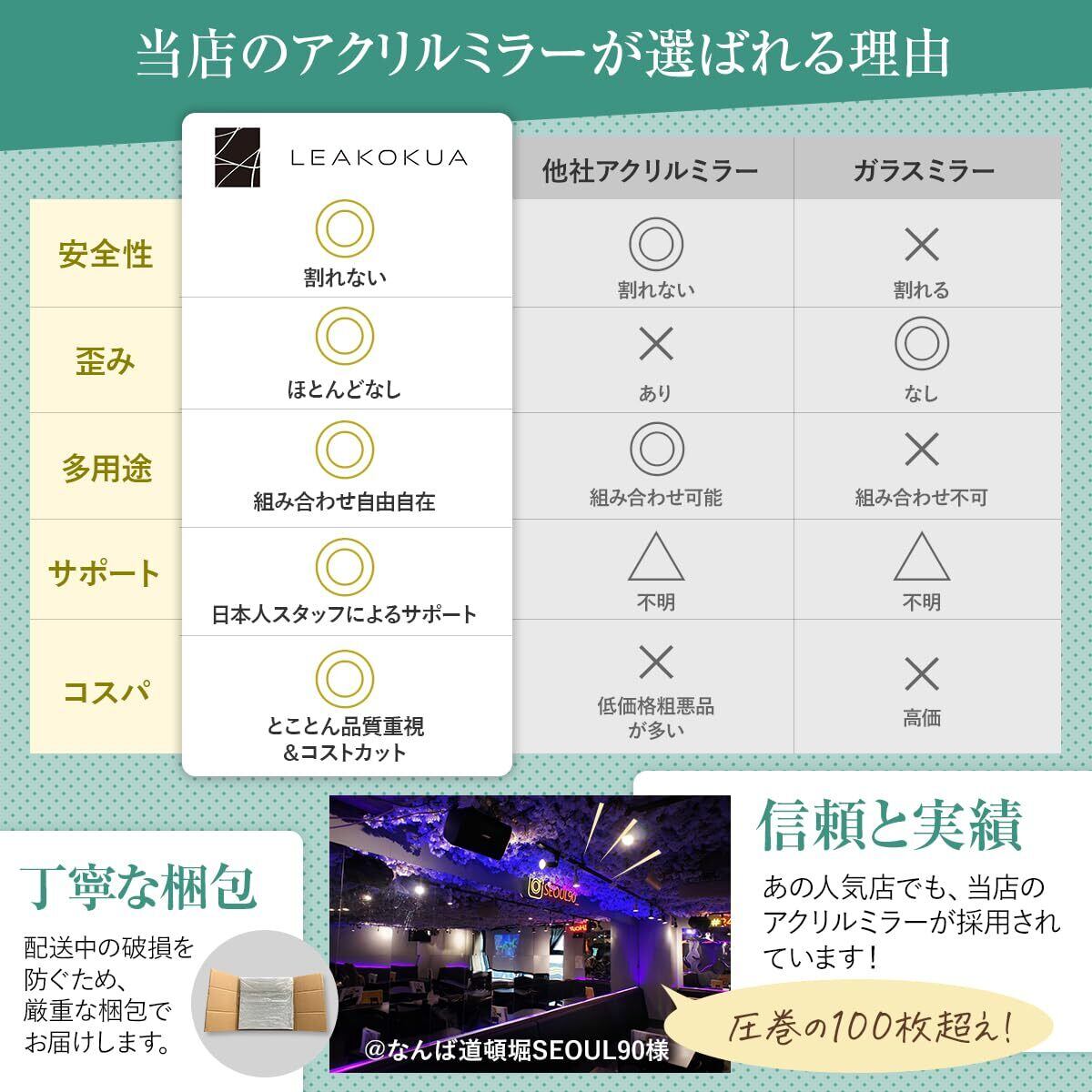 LEAKOKUA 割れない鏡 地震対策 【お店でも使われています】 鏡 全身鏡 姿見 アクリルミラー (30cm×30cm) (4枚セット)