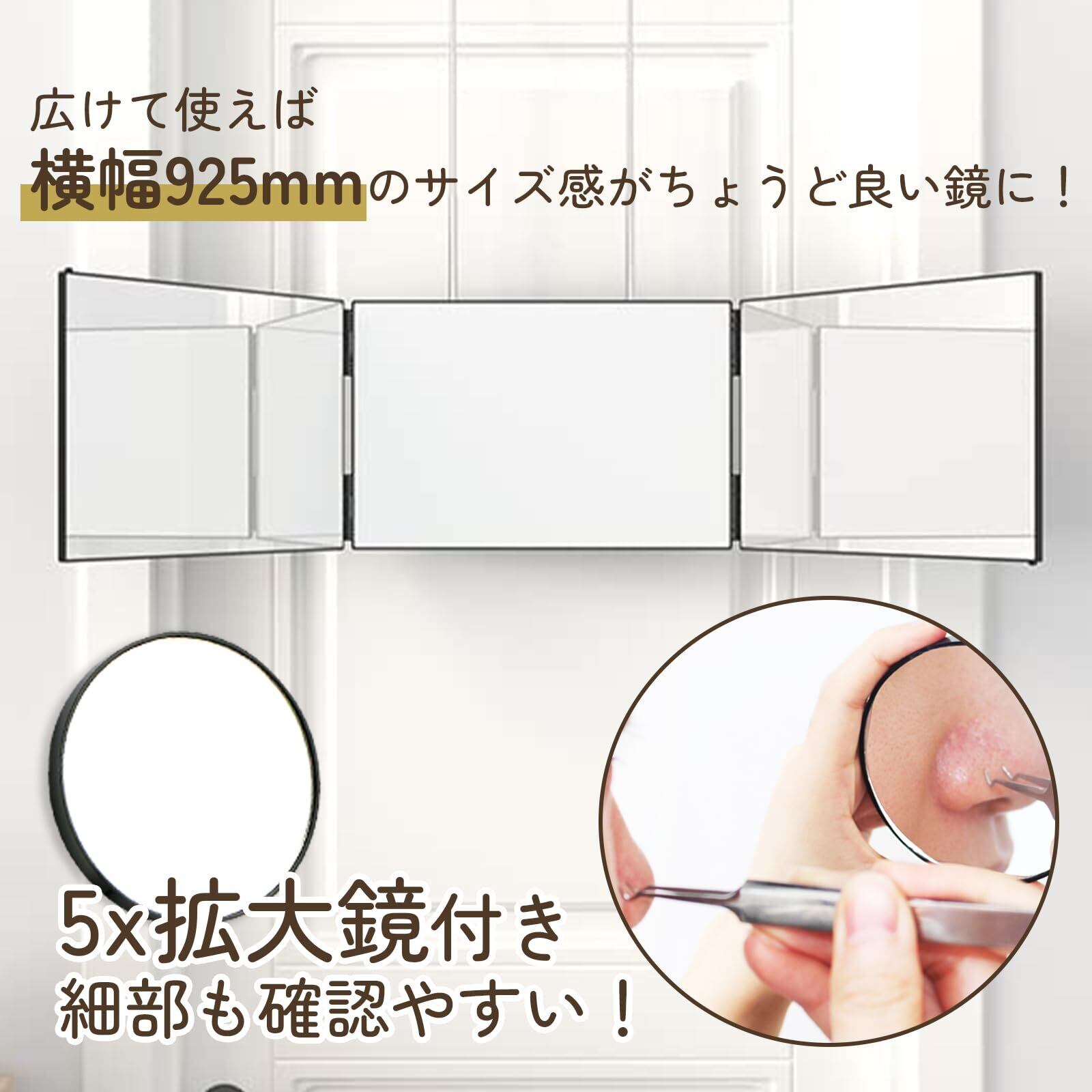 【品質】セット内容: 三面鏡*1、5倍拡大鏡*1。の製品はすべて品質が付きて、何か問題がございましたら、いつでもお気楽ににご連絡お願い致します。お取り扱いが不適切なことなく、故障及び損傷が生じた場合故障品が修理ではなく、直接交換対応できます。不良品・ご不満の場合またはご使用上何かご不明なところがございましたら、お気軽にお問い合わせください。連絡方法:注文履歴より販売元にご連絡ください。