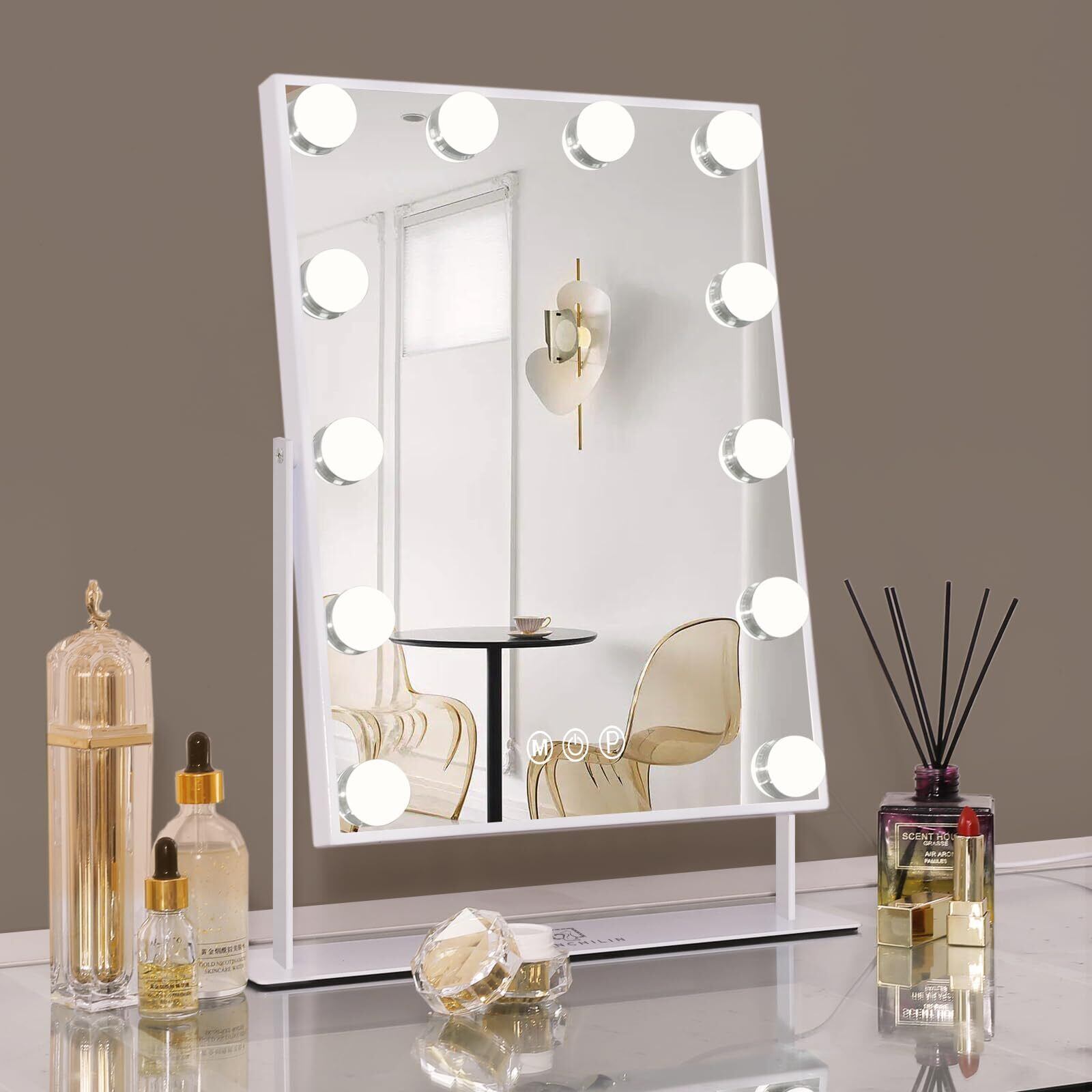 耐久性がある:ライト付きハリウッドミラーは、12V 認定アダプターを搭載しており、交換の心配がなく、50000時間の寿命を持つ12個の交換しない電球で設計されています。独自の落下防止パッケージにより、ミラーが割れにくい状態でパッケージされます。