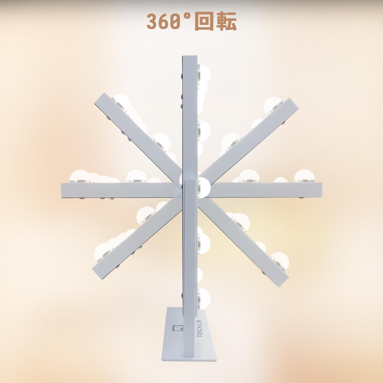 360度垂直回転式 上下360度で角度を調節され、お好きな角度でメイクが楽にできます。丈夫で安定な金属スタンドを使用して、耐久性に優れており、後ろに傾けても倒れません。