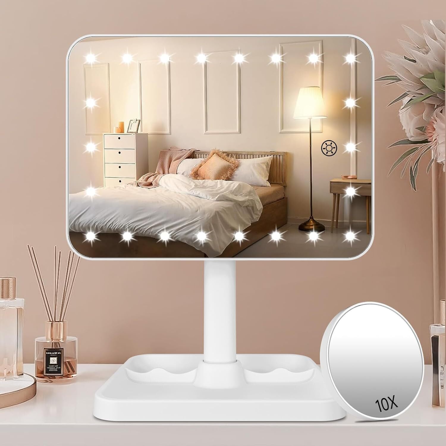 FASCINATE LED ライト付き 鏡 卓上 女優ミラー 充電式 1000mAh内蔵バッテリー 明るさ調整可能 360°角度調整 10倍拡大鏡付き ホワイト