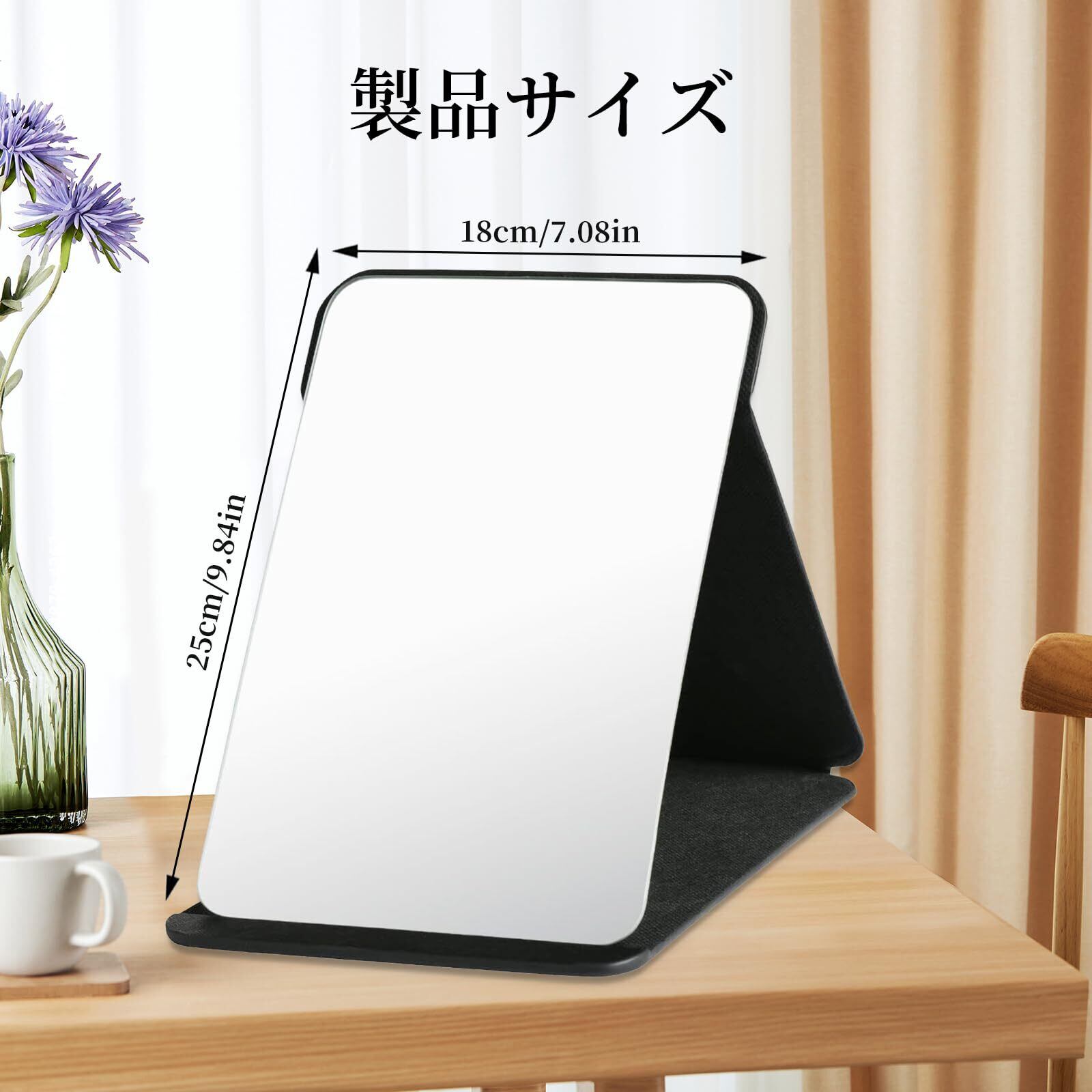 コンパクトサイズ: この巧妙に設計されたミラーは、わずか21 x 16 cmに折りたたむことができ、軽量で持ち運びが簡単です。旅行用バッグやハンドバッグに便利に収納でき、場所を取りません。