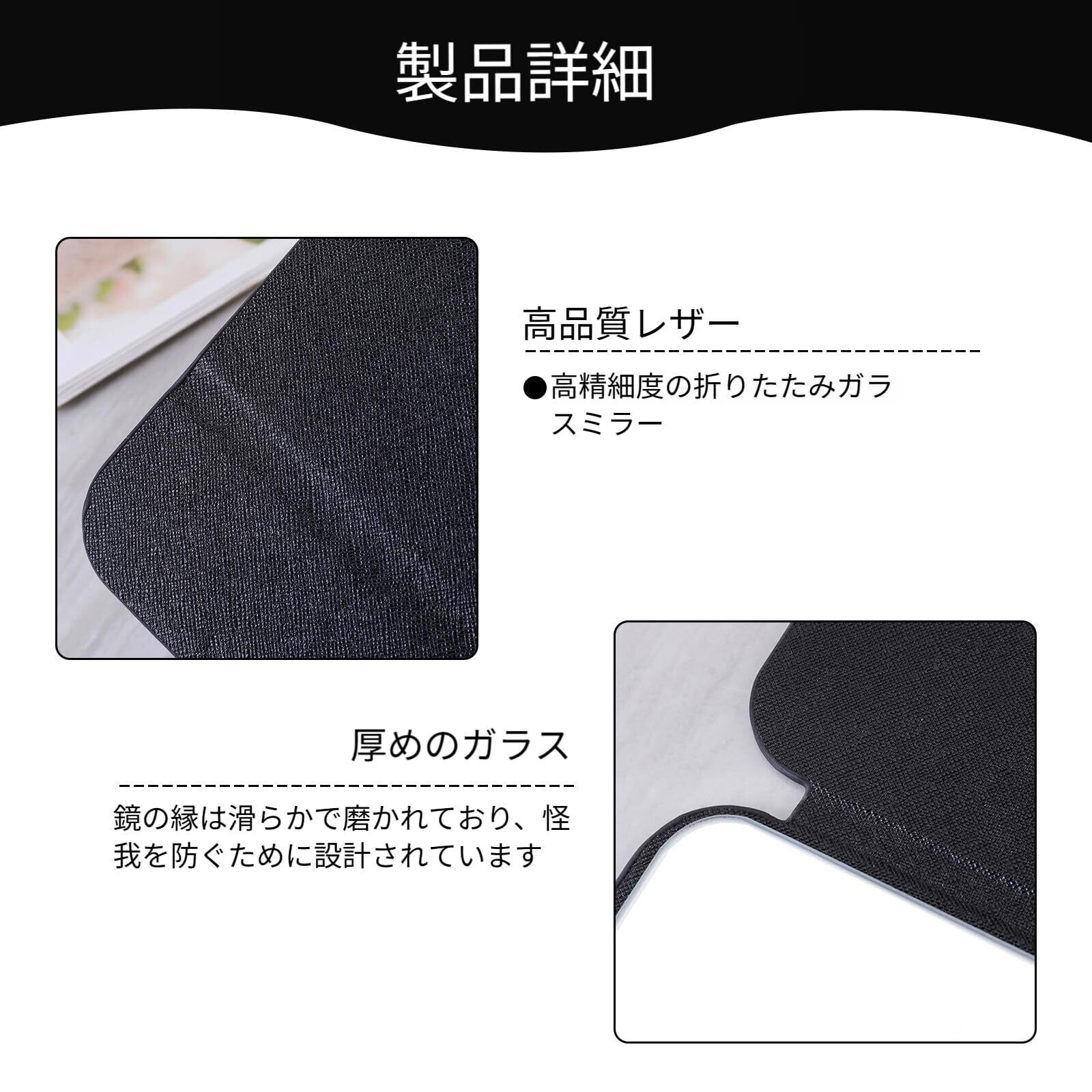 高品質の素材: テーブルミラーは滑らかなエッジと手に優しい並外れた質感を備えています。柔らかいPU張りのレザーで包まれたベースは滑りを防ぎ、損傷のリスクを軽減します。